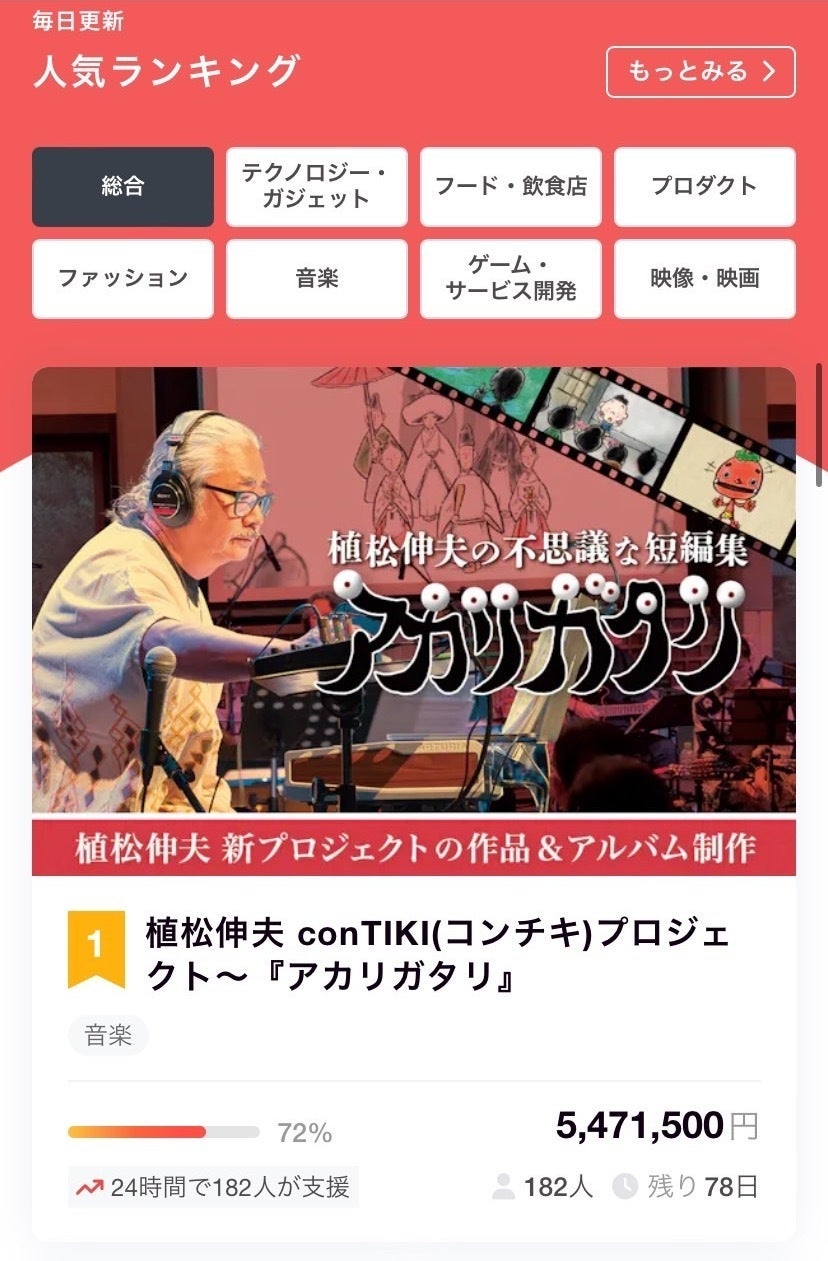 昨日3/23より開催中の 植松伸夫の不思議な短編集「アカリガタリ」のクラウドファンディングがお陰様でオープン後に人気ランキング総合1位を獲得しました!