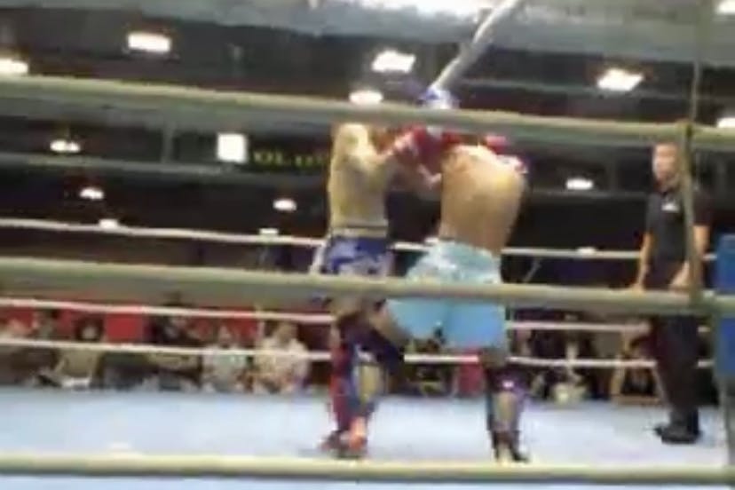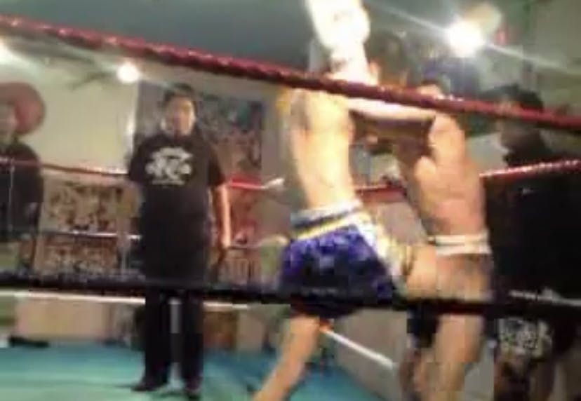20代になりキックジムや空手道場に通いながらタイにムエタイ留学にも行き、アマチュアキック40戦、非公式プロムエタイ試合8戦経験しました。