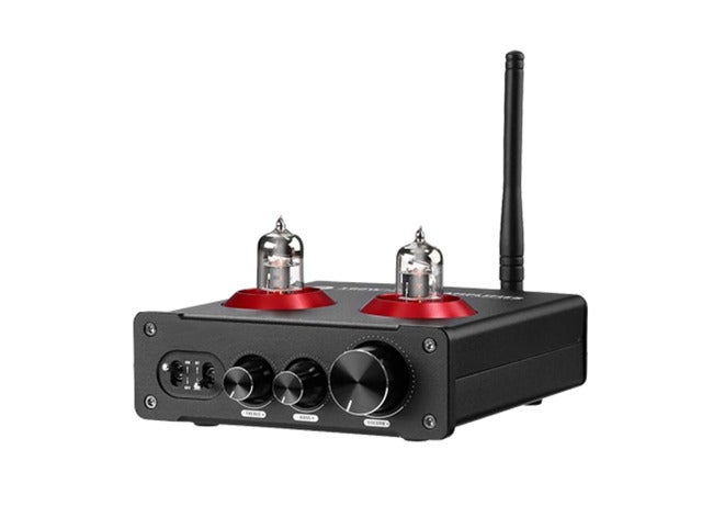 片手で持てるほど小さなアンプは真空管とデジタルのハイブリッド構造で、さらにBluetooth5.0搭載なので別途Bluetoothレシーバーを購入する必要なくスマホ・タブレット・PCの音源を利用できる優れもので、海外でこんなものが生産されているとは驚きました。早速、注文してみました。