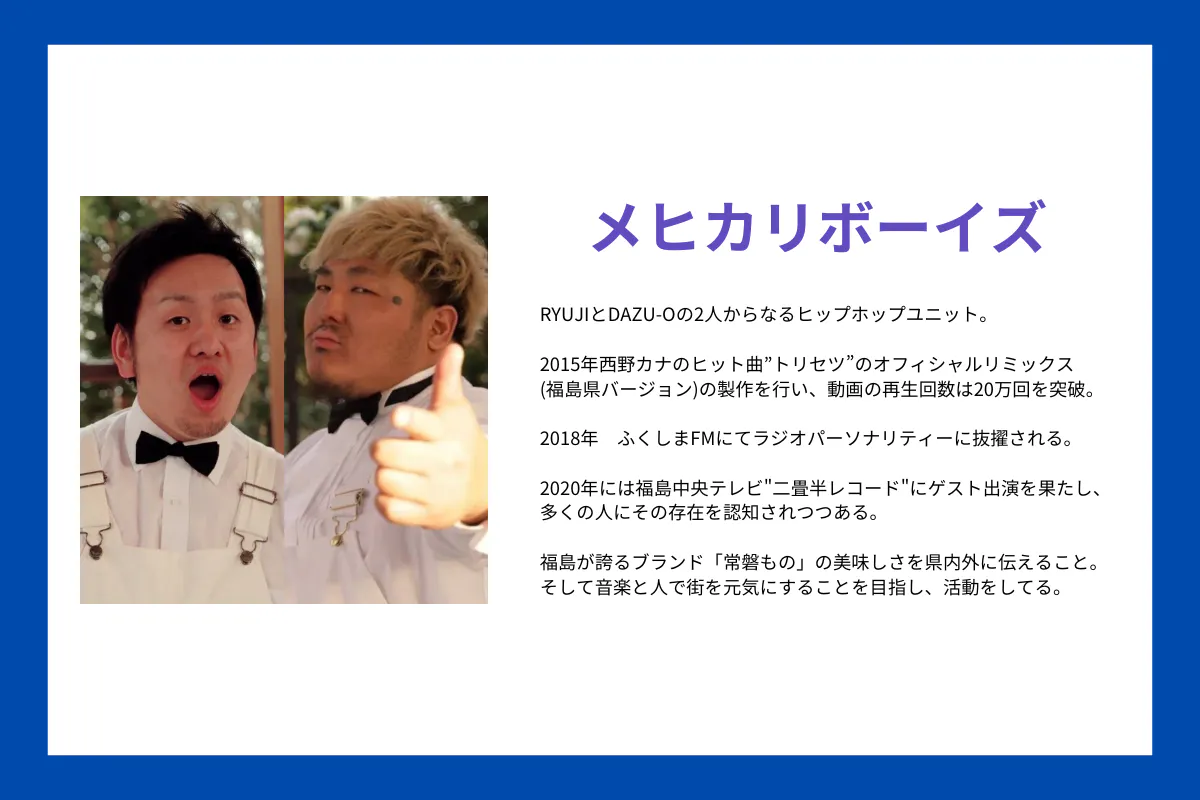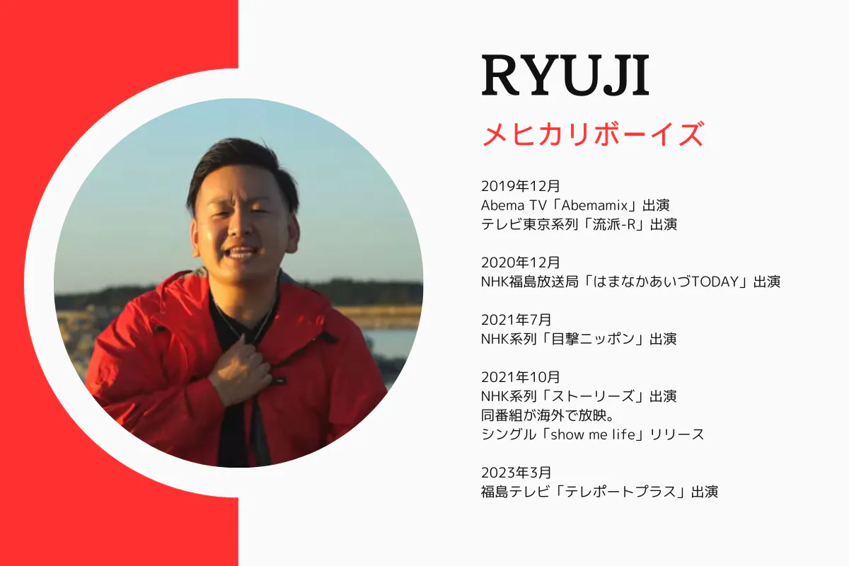 福島県浪江町出身で音楽活動をしてるメヒカリボーイズの『RYUJI』と申します。