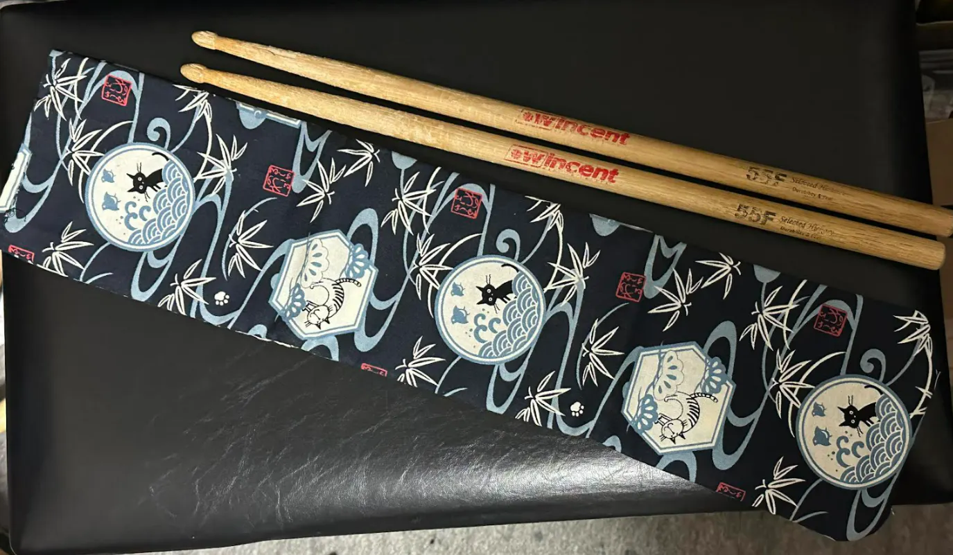 渡せなかった自分と向き合うため、このドラムスティックケースはいつも私の見えるところにおいていましたが、少し心のどこかで悲しく感じる自分もいました。過去の自分と向き合うことは確かに大事だけれど、それだけじゃ悲しすぎる。そこで、私は本来のスティックケース以上に生まれ変わらせて、自分も一歩前に進めるドラムスティックケース”よよぼっと”を作ることにしました。新たな想いを込めて、過去のドラムスティックケースに針を通し、一歩踏み出したのです!