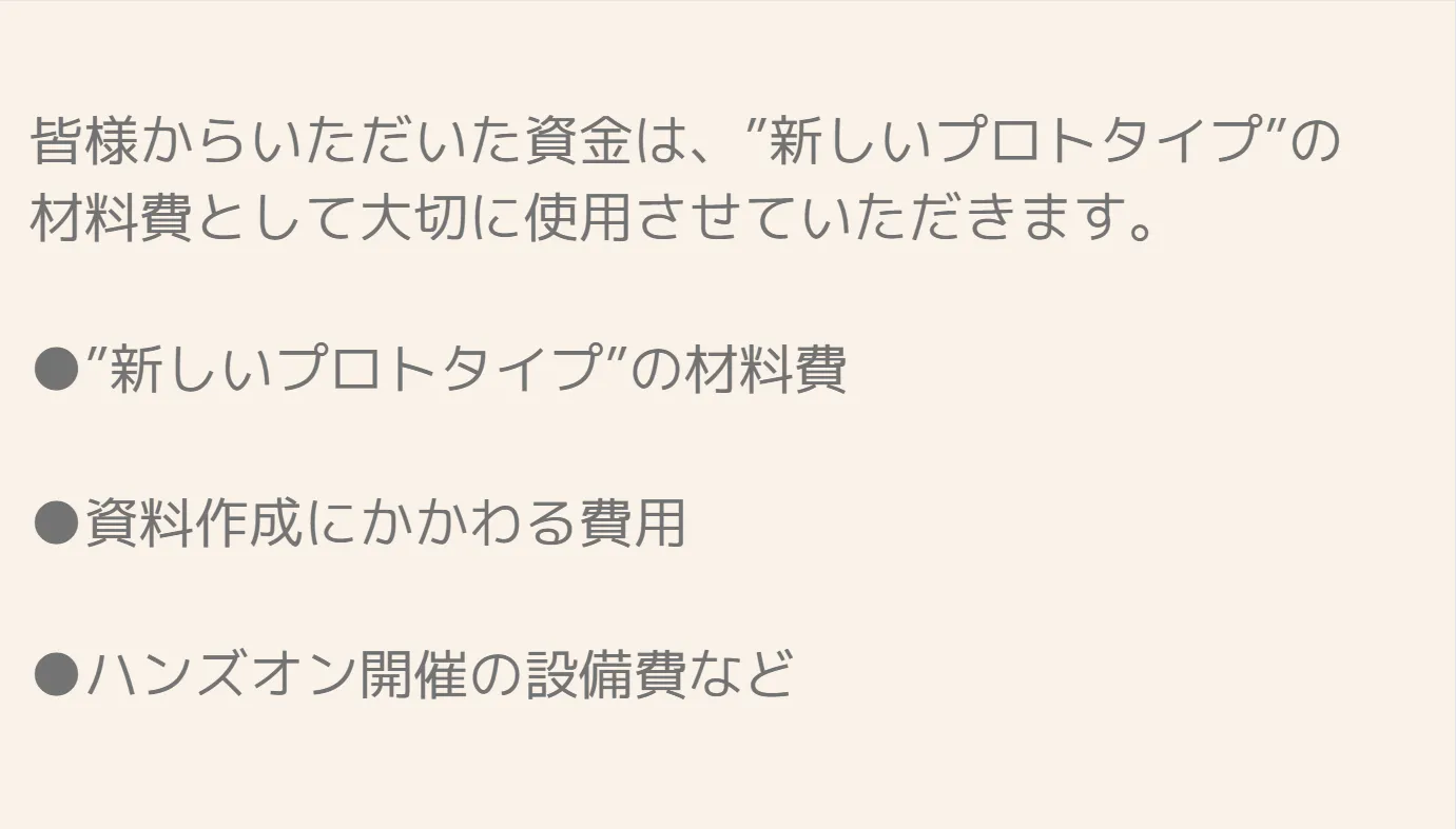 本プロジェクトはAll-or-Nothing方式で実施します。目標金額に満たない場合、計画の実行及びリターンのお届けはございません。