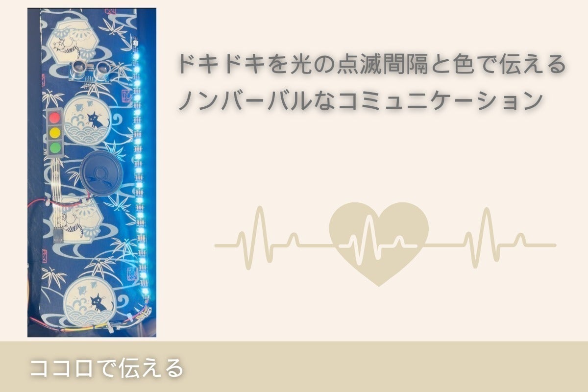 過去の経験から、共通の話題を生み出せるように、会話のきっかけを作ってくれるドラムスティックケース”よよぼっと”を作りました。言葉で自分のことを表現したり、自分の演奏を再生してくれるドラムスティックケースです。心拍と連動してドキドキ感など言葉や音楽で表現出来ないリアルな感情を表現できる機能も実装中です。