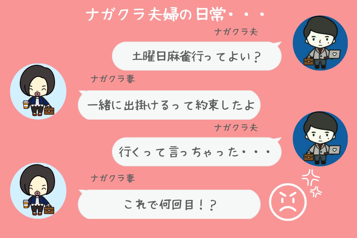 メンバーが足りないなどの理由で数日前に誘われることもしばしばで、私と出掛ける約束をした日の前日の夜に、「明日麻雀に行ってくる」と突然言われることが続きました。