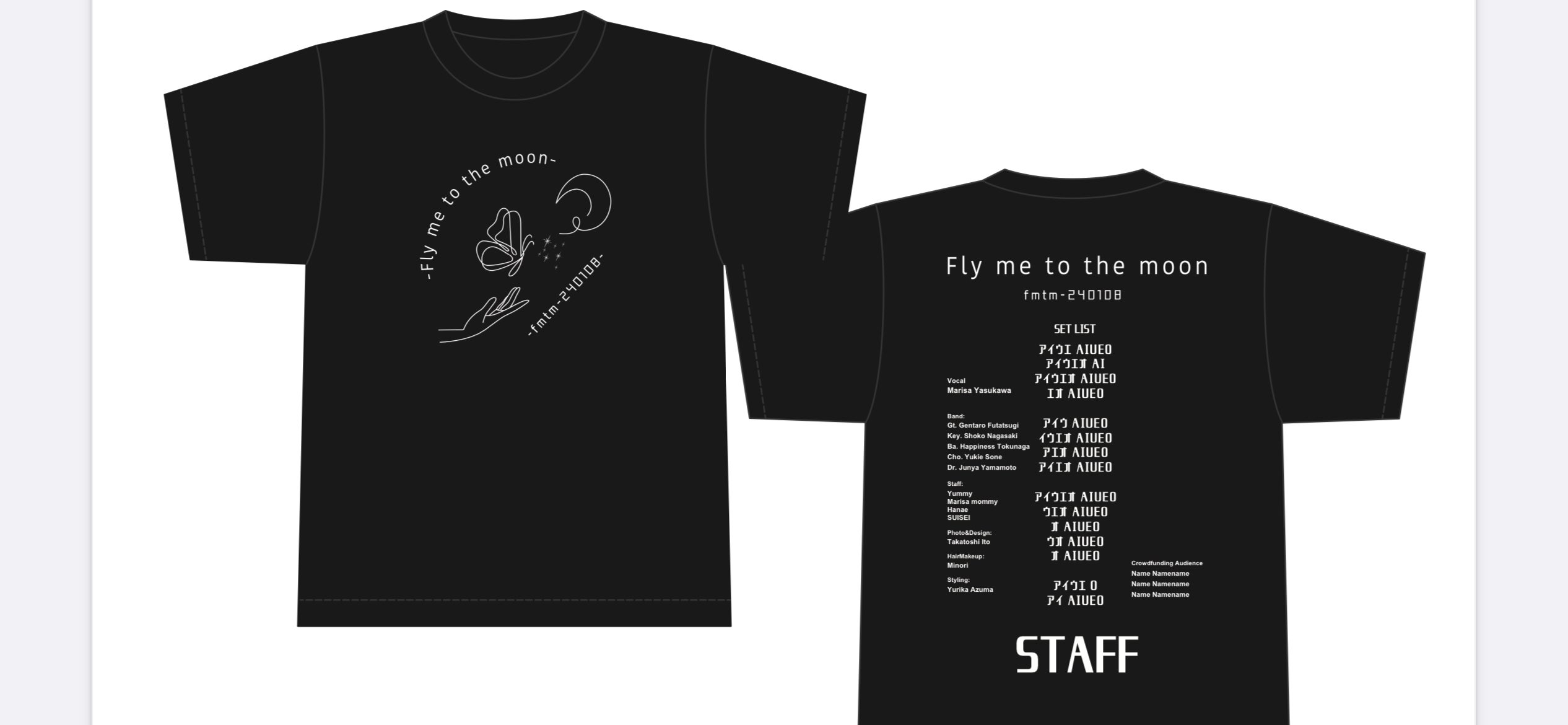 3万円・5万円コースのリターンでお名前をのせさせていただくスタッフTシャツのデザインが出来上がりました!!!!!