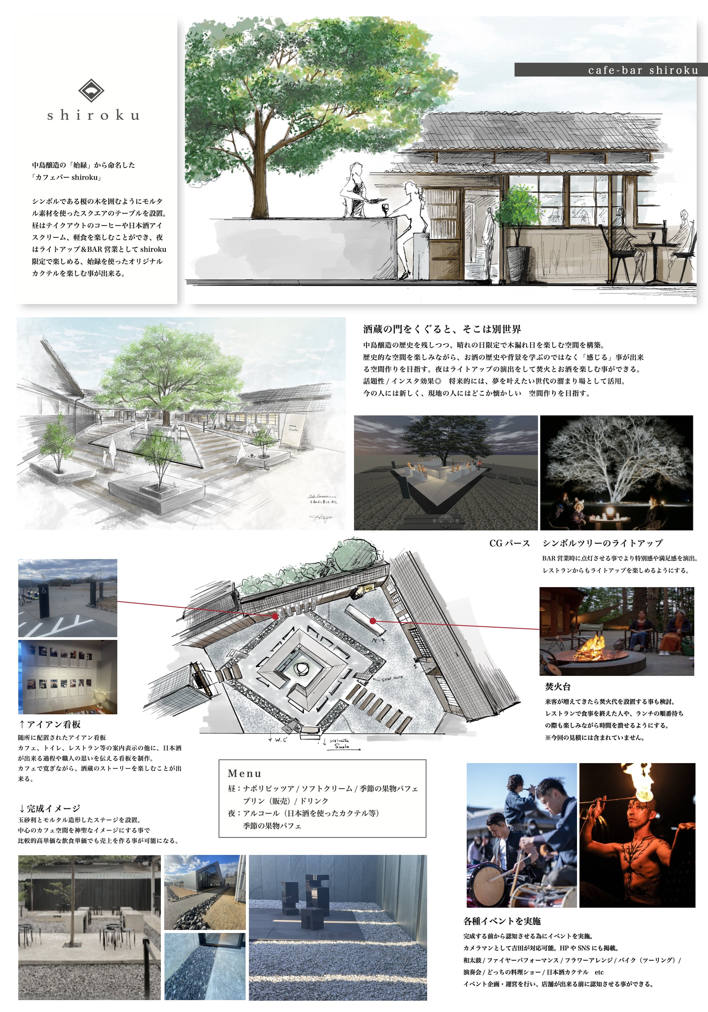 shirokuではオープンテラスのカフェと週末限定でBAR営業を行う予定です。