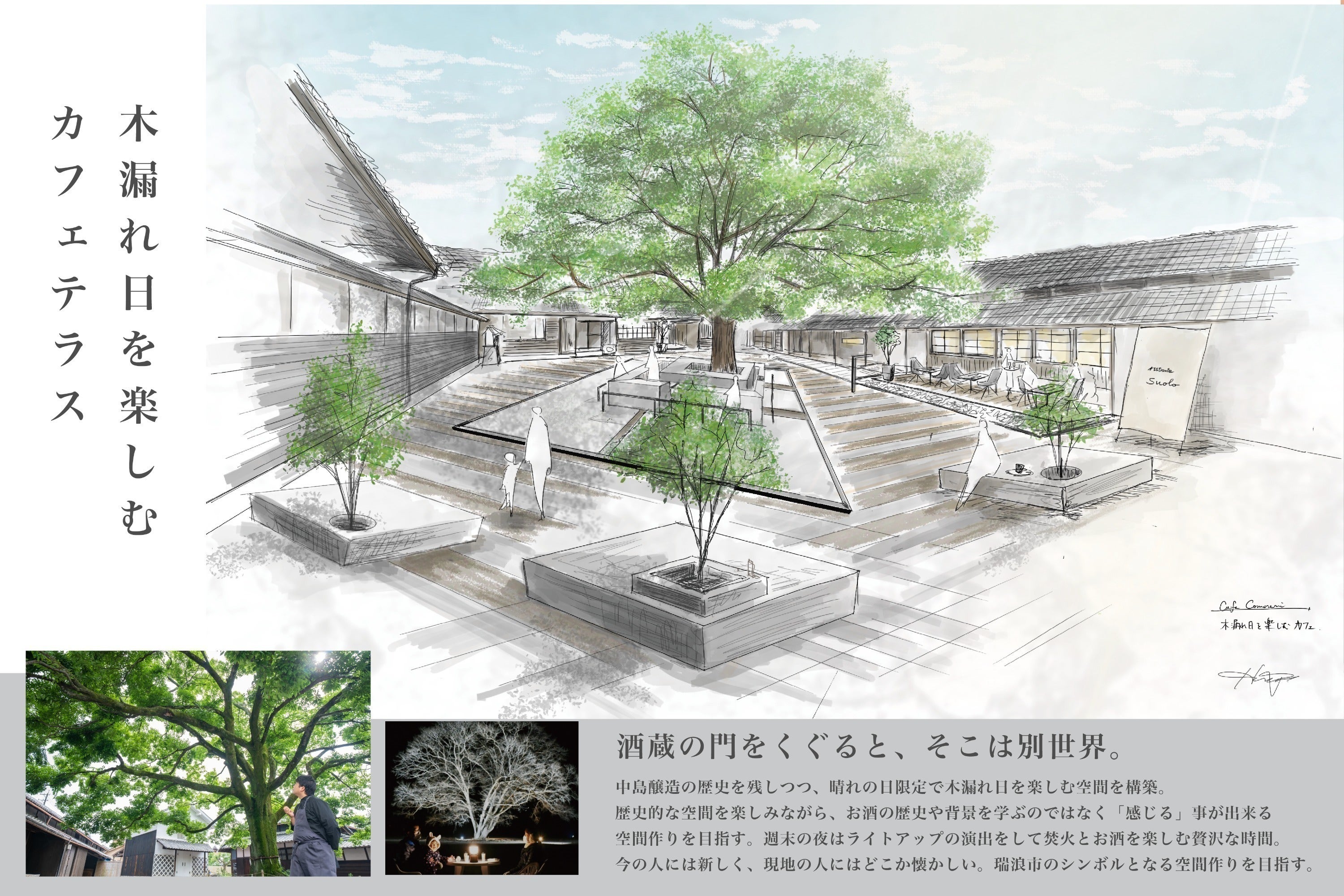 ◆もう一つのPRJは、同じく酒蔵の庭園内に酒蔵の御神木である榎(エノキ)と空間を堪能できる