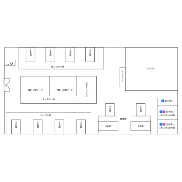 そして飲食店のキッズルームでは珍しい年代別のルームの完備、シアタールームの完備で子供たちが心から楽しめる場所を設置