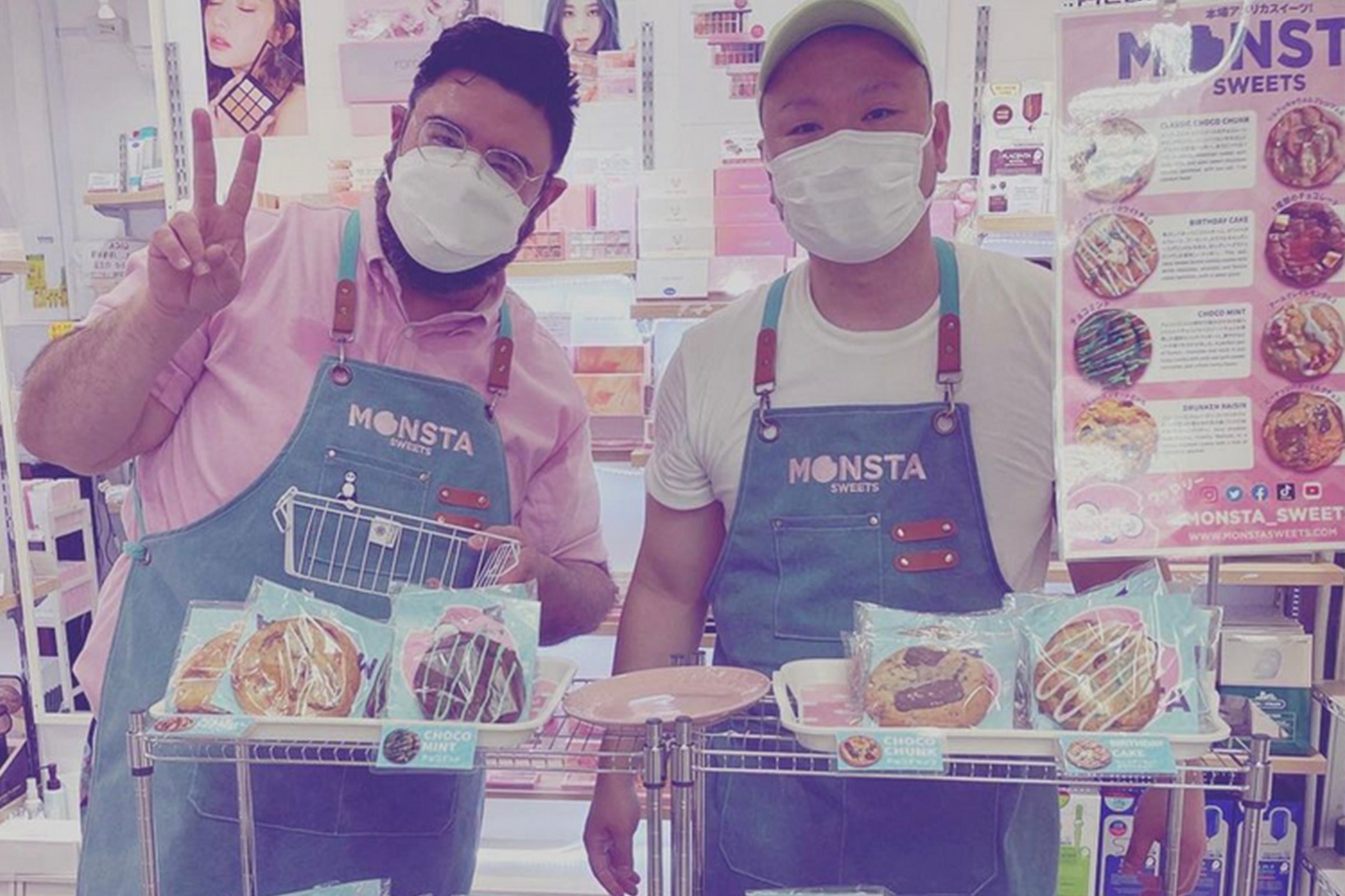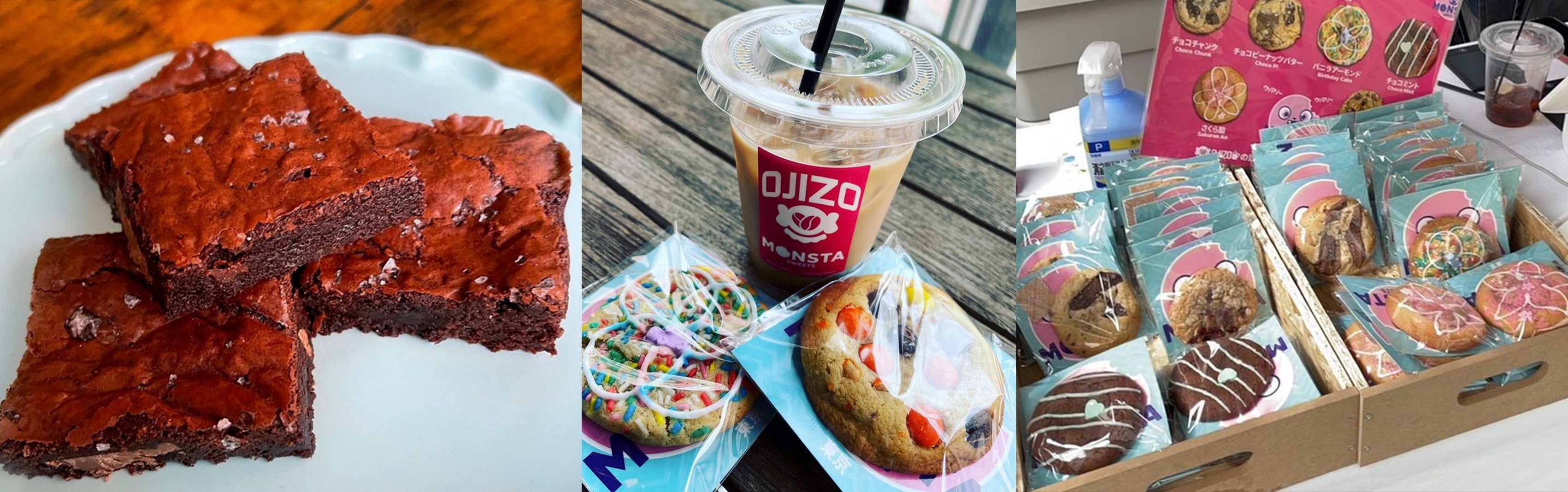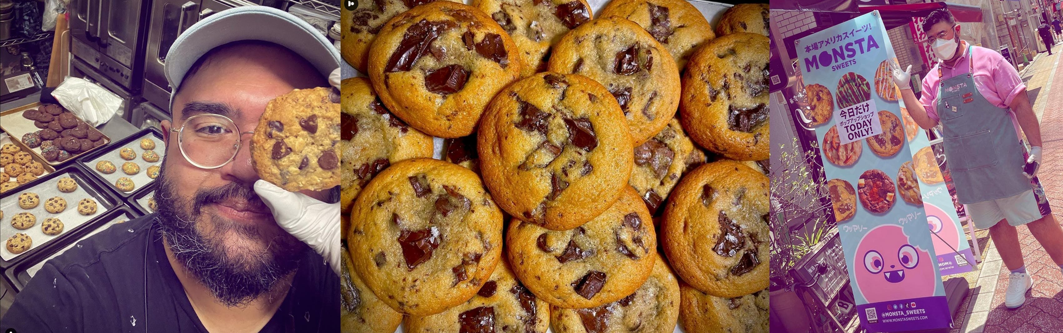 「MONSTA Sweets」は2021年12月に考案し、レシピの改良を重ね、ブランディングを確立してきました。 アメリカとは異なり、日本では自宅での焼き菓子等の製造、販売は法律で認められていません。そのため、食品衛生責任者の資格を取得し、地元のケーキ屋さんと契約を結び、キッチンをお借りし、クッキーを製造しポップアップでの販売を行なってきました。