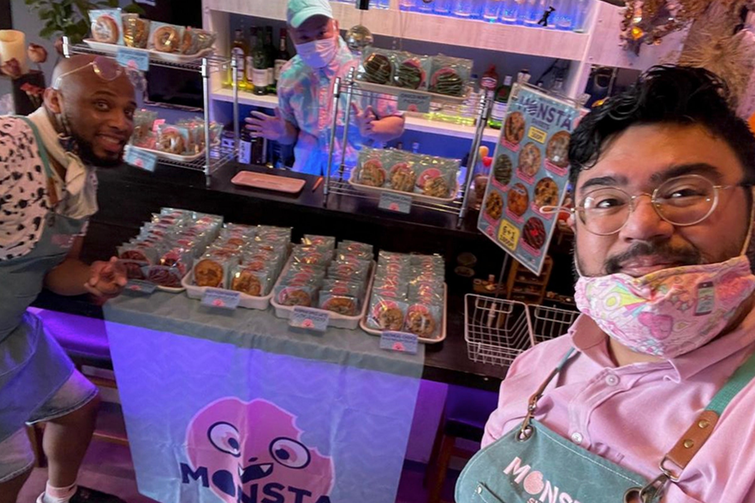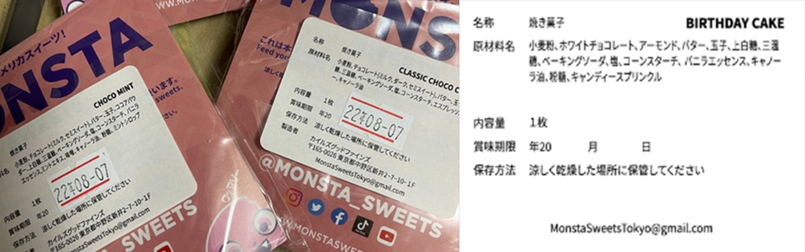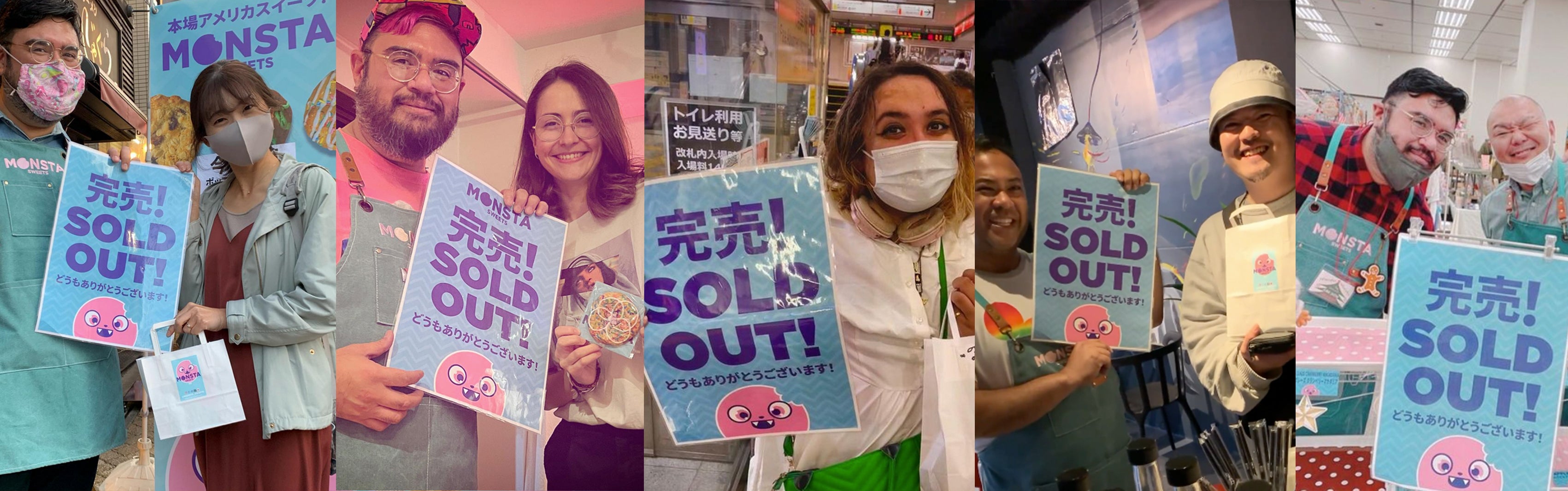 「MONSTA Sweets」は2021年12月に考案し、レシピの改良を重ね、ブランディングを確立してきました。 アメリカとは異なり、日本では自宅での焼き菓子等の製造、販売は法律で認められていません。そのため、食品衛生責任者の資格を取得し、地元のケーキ屋さんと契約を結び、キッチンをお借りし、クッキーを製造しポップアップでの販売を行なってきました。