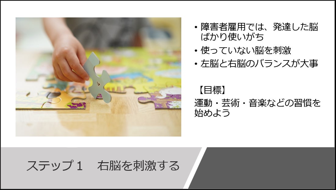 「右脳を刺激して→環境を変えて→そして夢を持つ」という3ステップを扱います。