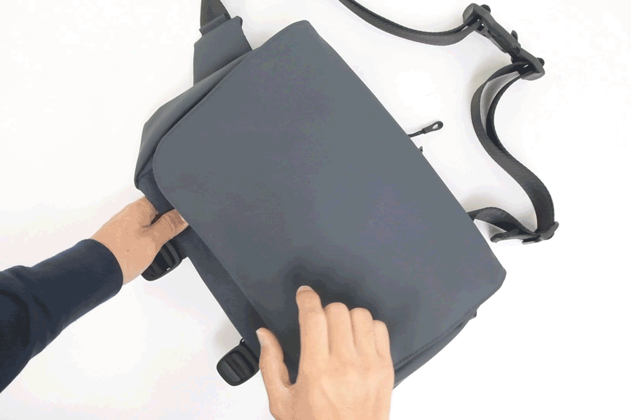 拡張が出来ることで、普段は必要最低限の荷物で身軽に出かけて、荷物が増えた時も拡張することで対応ができるので、いつでもこのバッグ一つで出かけられる設計になっています。
