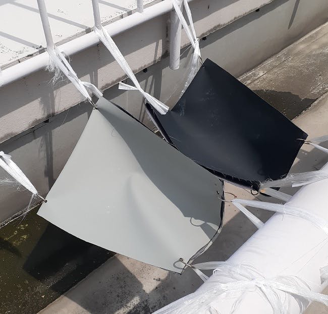 その実験内容は4月から10月まで屋外の屋上に生地を放置するという物。