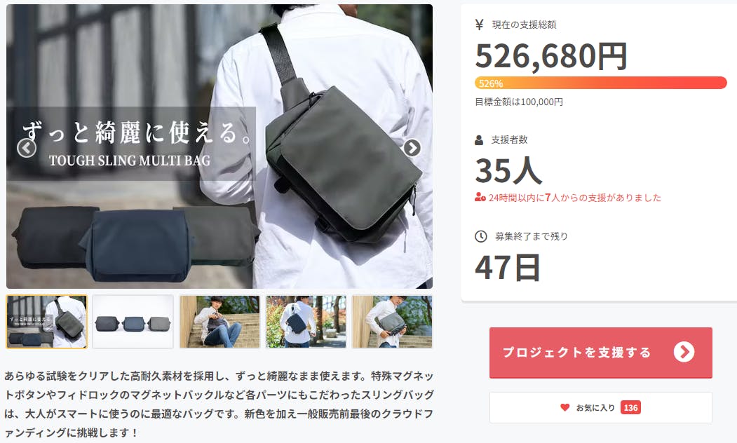 まだまだプロジェクト期間も残っておりますので、もっと沢山の方にタフスリングマルチバッグをお届けできるように頑張ります!