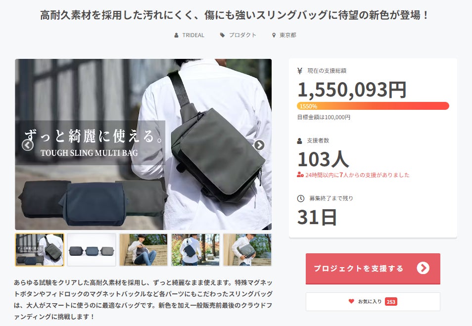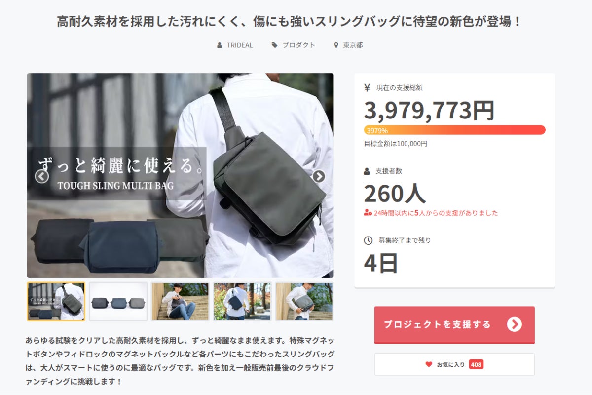 CAMPFIREユーザーの皆様こんばんは!TRIDEAL運営チームです。10月から始まったプロジェクトもとうとう明日で終了になりました!明日12/15(金)の23時59分でプロジェクトが終了になります。ご検討中の方は、お得に購入できる今回のプロジェクトでご支援ください!【配送スケジュールのお知らせ】倉庫と配送のスケジュールを詰めておりましたが、スケジュール最終確定致しましたのでご案内を致します。全てのリターンは12/21(木)までに全ての出荷が完了になります。※基本的には19日~20日で出荷出来ると思いますが、予備日として21日配送完了とさせて頂きます。購入時からお届け先の変更が有る方は、プロジェクト終了の12/15 までに変更をお願い致します。先日の活動報告でご案内いたしましたとおり、各種SNSのご案内とアンケートを同封しておりますので、ご協力を頂けますと幸いです。それではプロジェクト終了まで応援、ご支援宜しくお願い致します。■各種SNSのご紹介■ホームページ→https://trideal.jp/Instagram→https://www.instagram.com/trideal_official/公式ライン→https://lin.ee/yNchiKuy