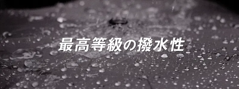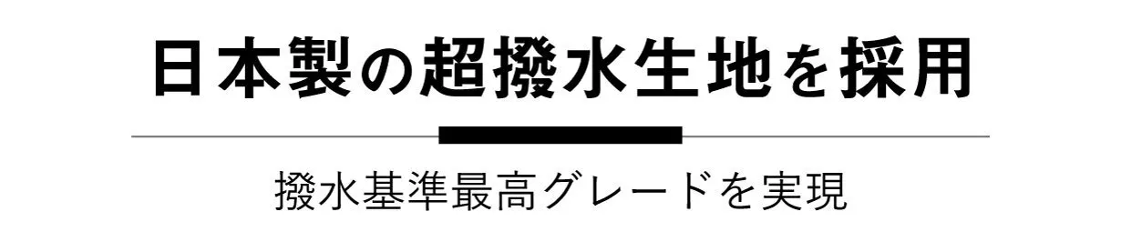 日本のTORAY SAKAIの生地を採用。撥水グレードも前作から向上し、「JIS規格の防水度試験(JIS L 1092繊維製品の防水性試験方法)」の最高グレード(グレード5/全5段階)を実現