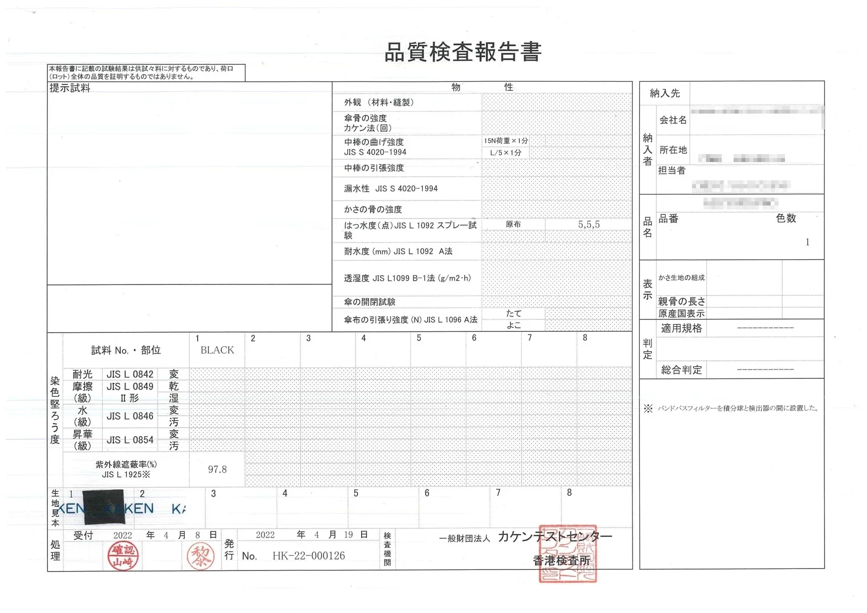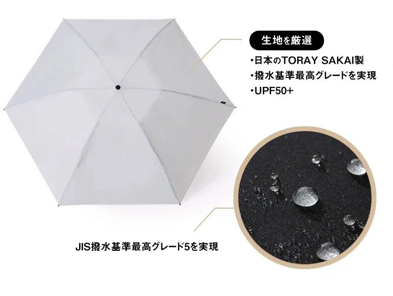 A:JIS規格の防水度試験(JIS L 1092繊維製品の防水性試験方法)をグレード5(5級/全5段階)でクリアしておりますので、軽く傘を振っていただくだけで、水滴を振り落とすことが可能です。あくまでも使用前の状態での検査結果となりますので、使用頻度によって撥水効果が下がる可能性もありますこと、予めご了承ください。