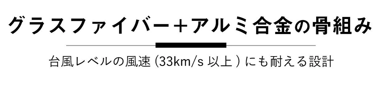 自社工場にて台風レベルの風でも折れにくいことを確認。(風速120km/hで検証)
