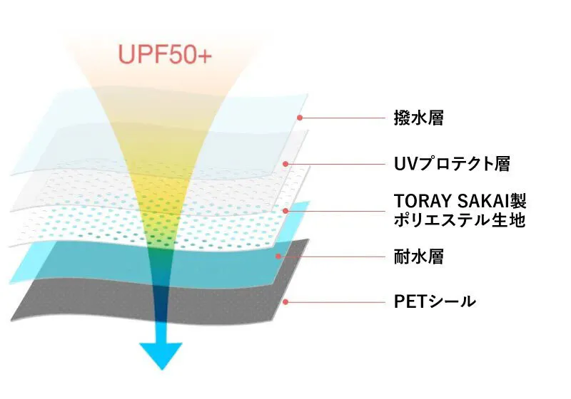 「UPF50+」で強い日差しからもガード。