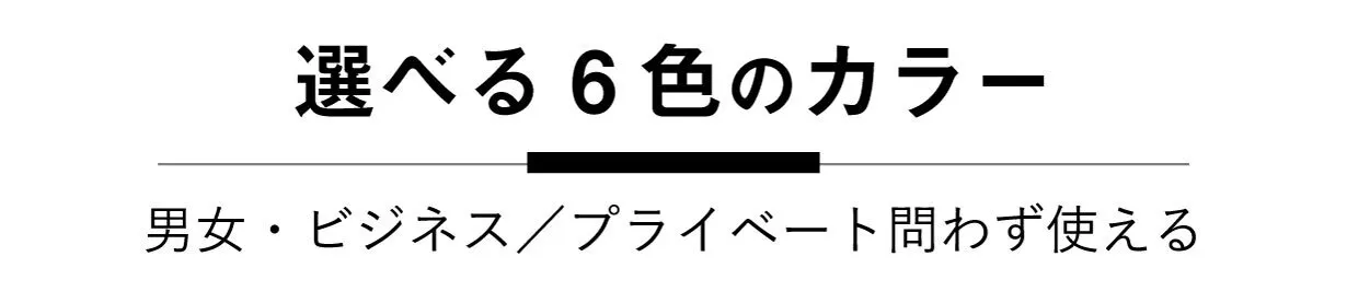 男女、ビジネス・プライベートを問わず、好みのカラーが見つかる6色展開!