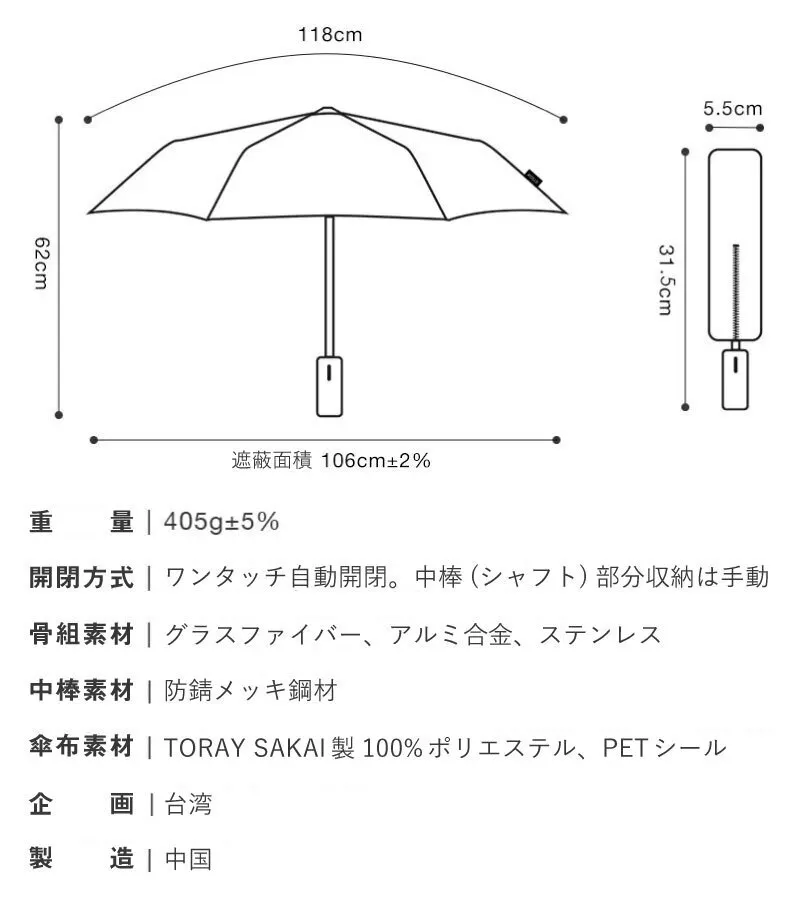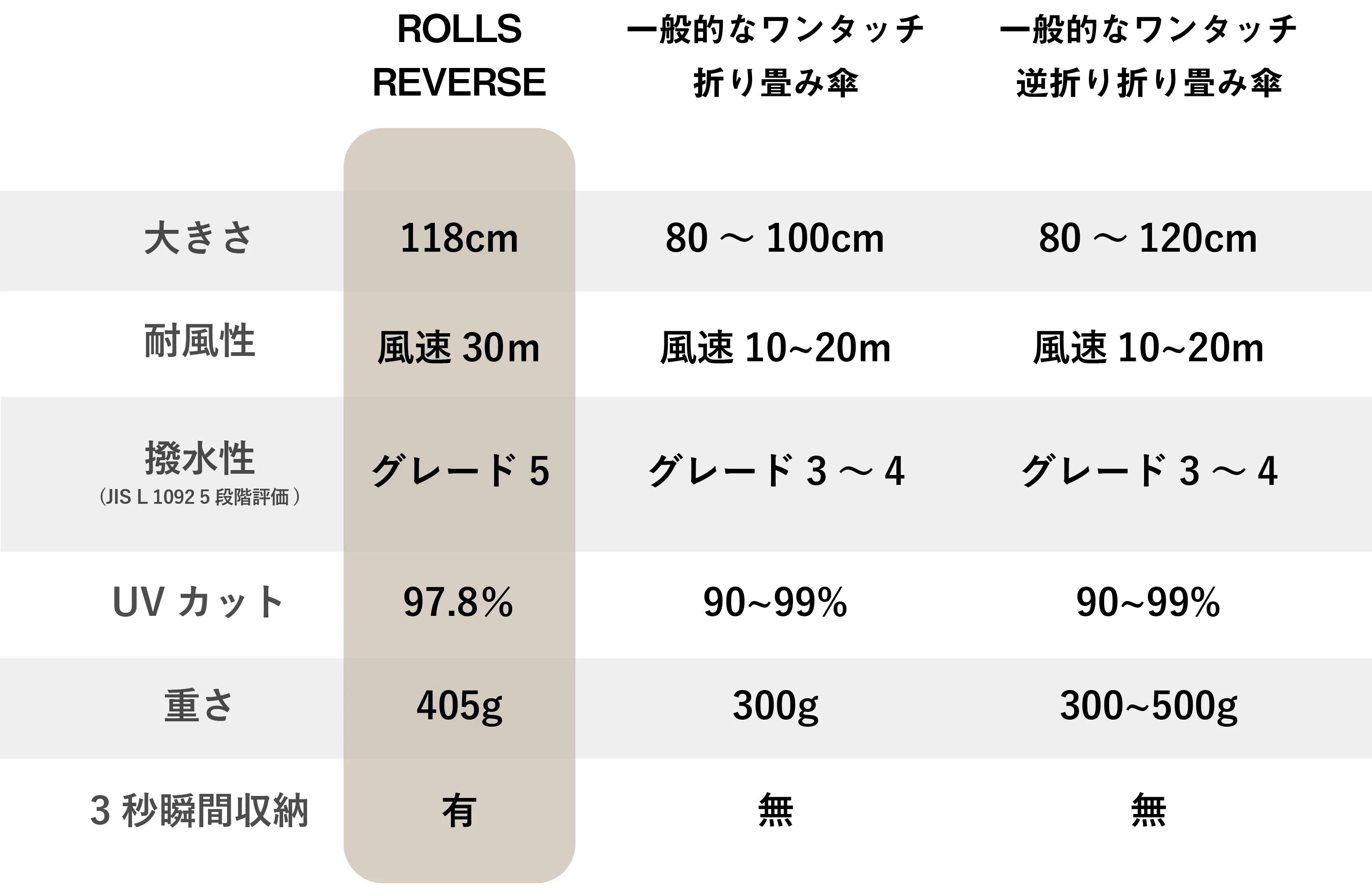 ■一般的なワンタッチ折り畳み傘との比較表