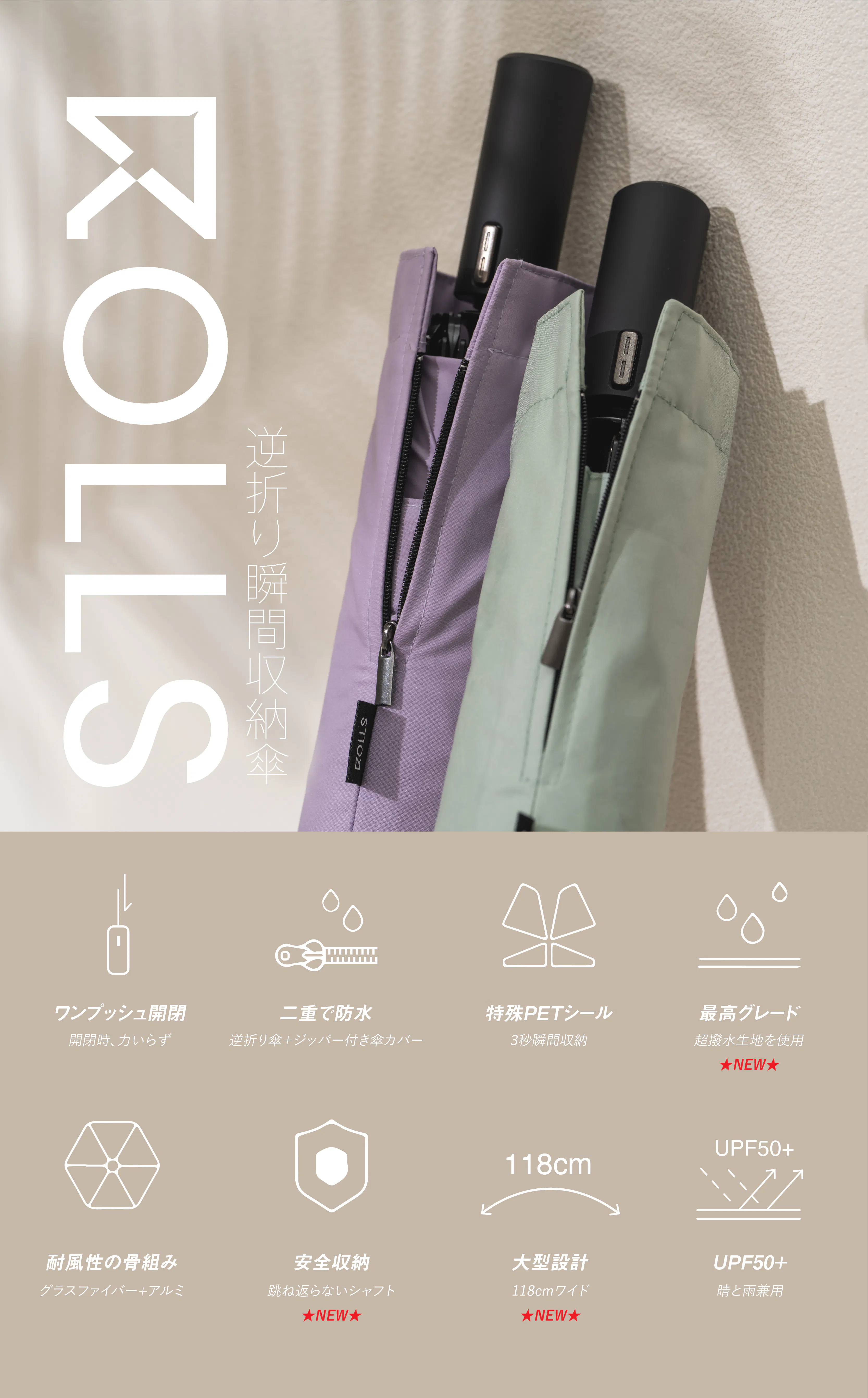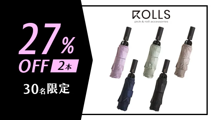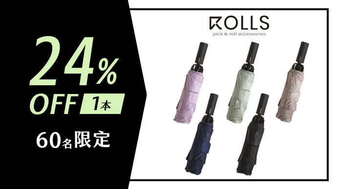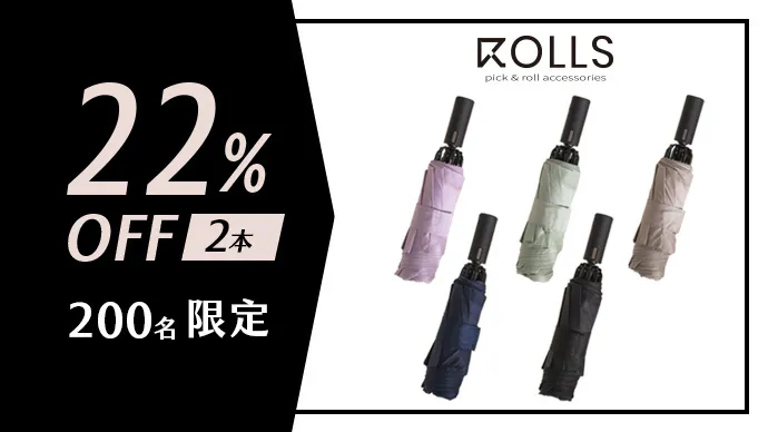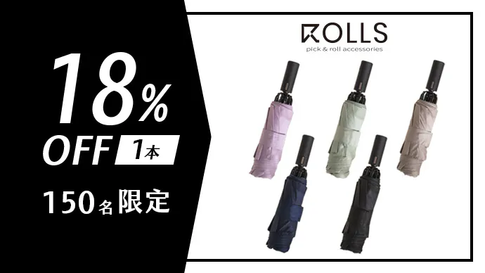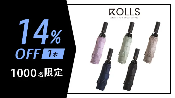 ROLLSというブランド名は「ロールアップデザイン」にちなんで名付けられ、傘の折り目を直さずに簡単に「ロールアップ」することができます。これは英語の「ROLL」を意味します。
