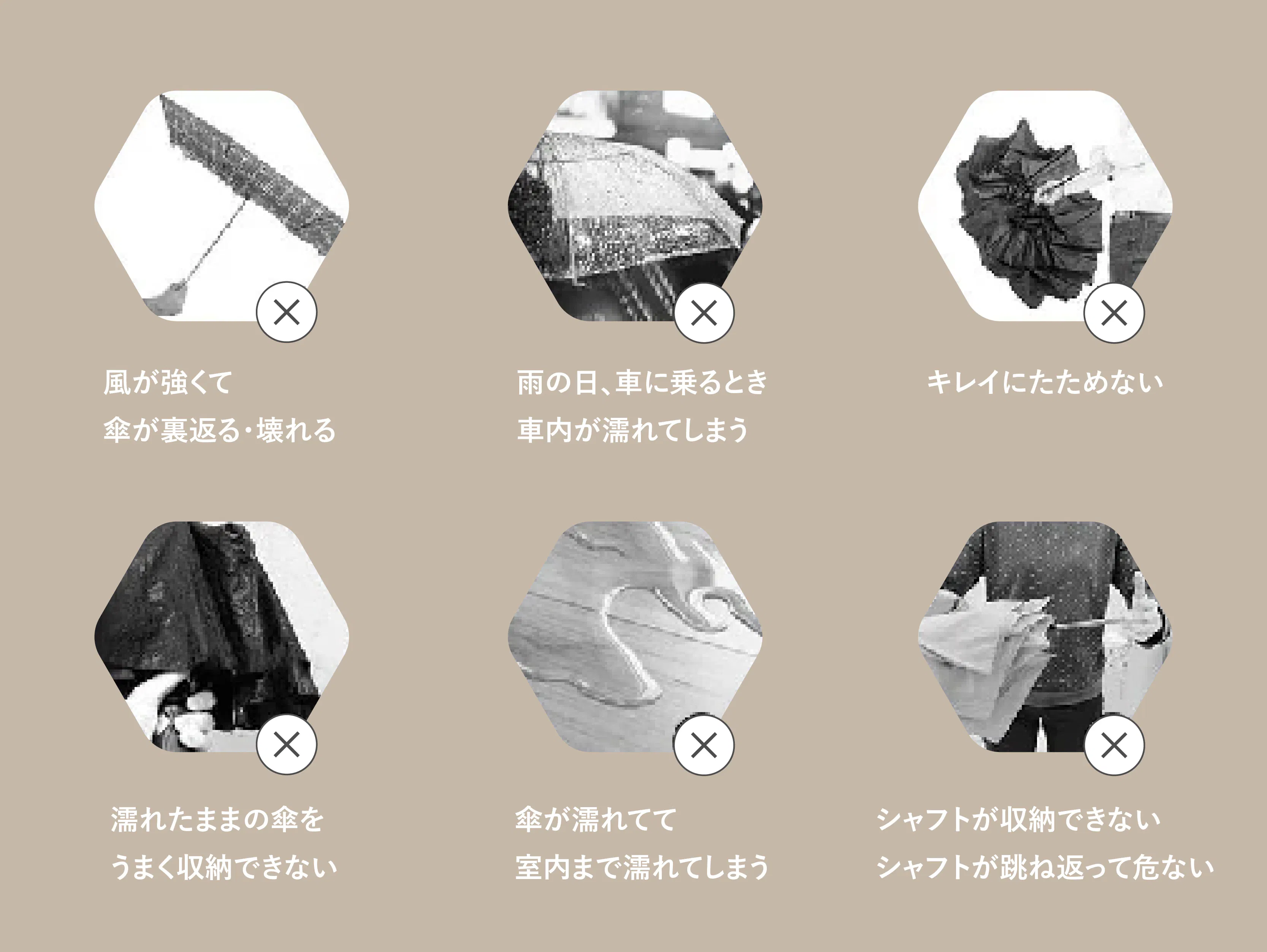折り畳み傘に対して以下のように多くの悩み・不満があると思います。