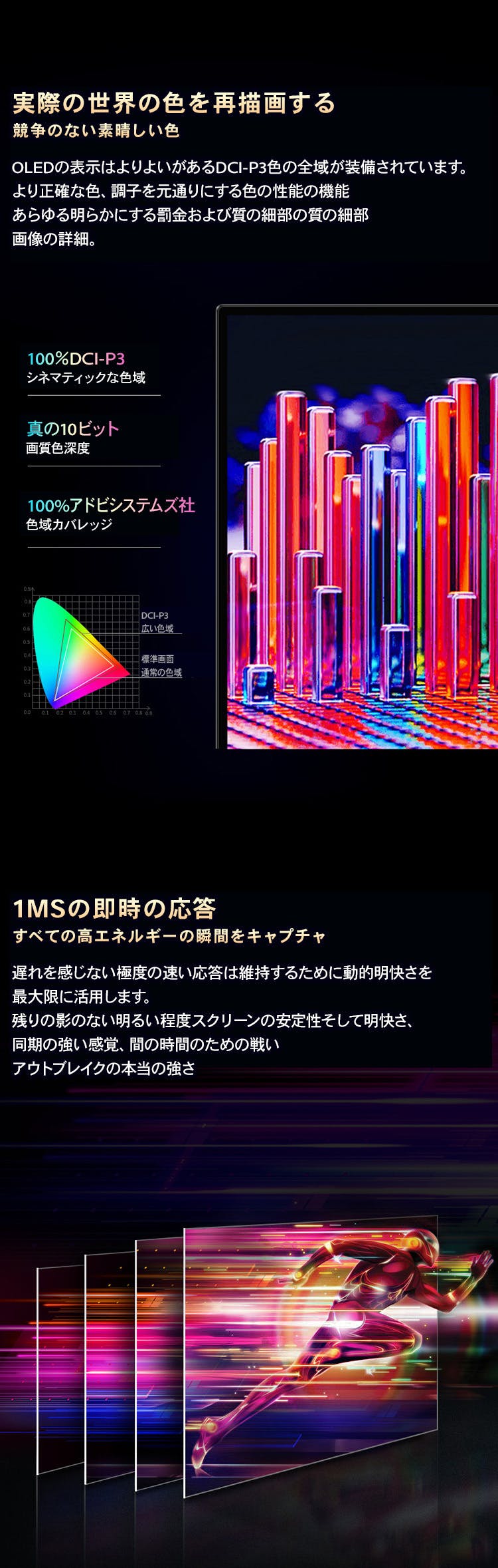 広い色域 100% DCI-P3