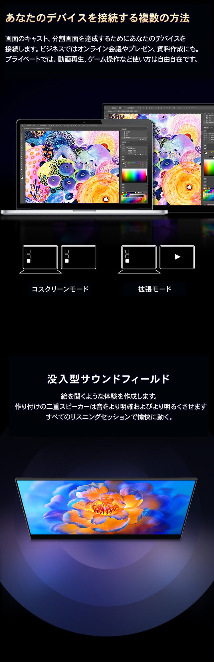 スマホ、ゲーム、PCのマルチディスプレイ化に最適。