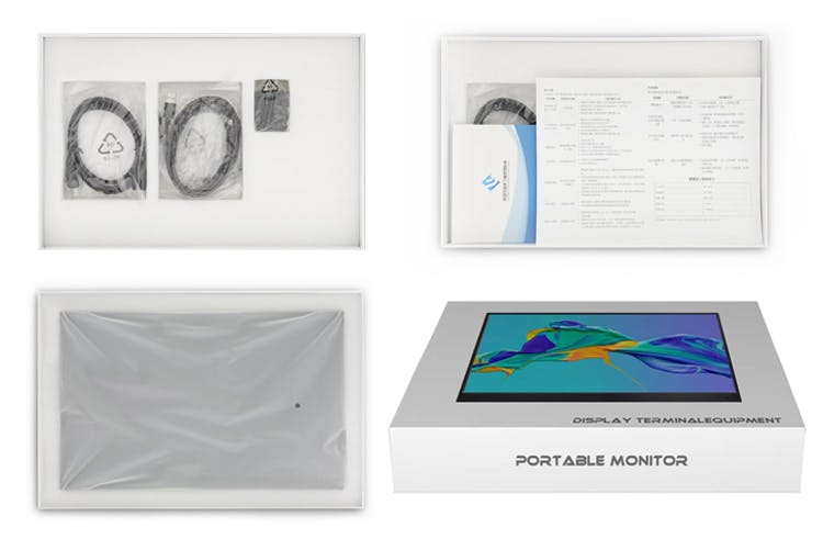 モニター本体、ソフトケース、電源用USBケーブル、TypeC-Cケーブル、TypeA-Cケーブル、HDMIケーブル、ACアダプター(PSE取得)、日本語の取説