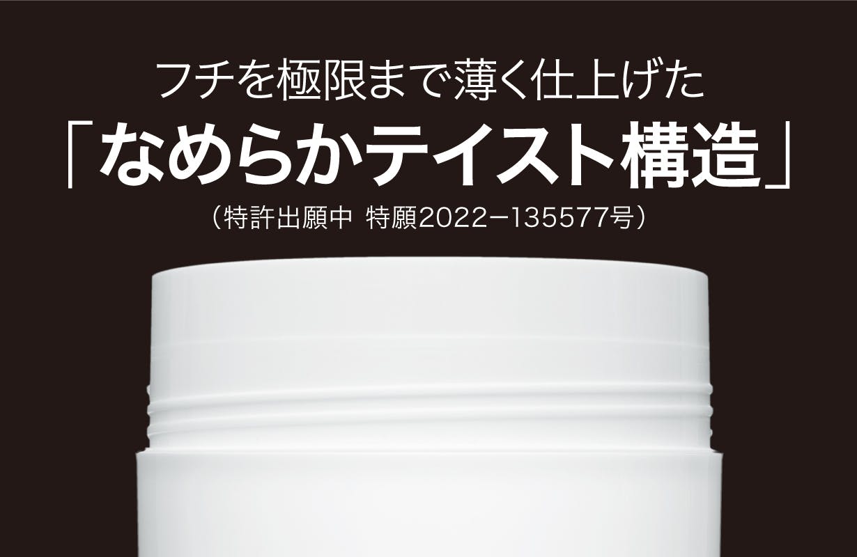飲み口からネジ部分を外すことで飲みやすさを追求した『なめらかテイスト構造』(特許出願中 特願2022-135577号)により、繊細な口当たりを実現しました。