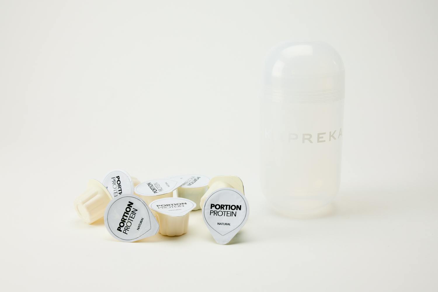 液体のドリンクタイプのプロテインは従来もありました。 KAPREKARはそれを濃縮してポーションタイプにしたのです。 これなら、1回分の持ち運びも楽ちん。もちろんカバンの中が粉だらけになるなんてこともありません。 コンパクトなサイズ感で、少量の水にすぐ溶けます。 おなか一杯飲まなくても、しっかりとタンパク質を補えます。 また1回分のポーションタイプにすることで、プロテインの新鮮さをキープ。 常にフレッシュな生プロテインをおいしく補給していただけます。