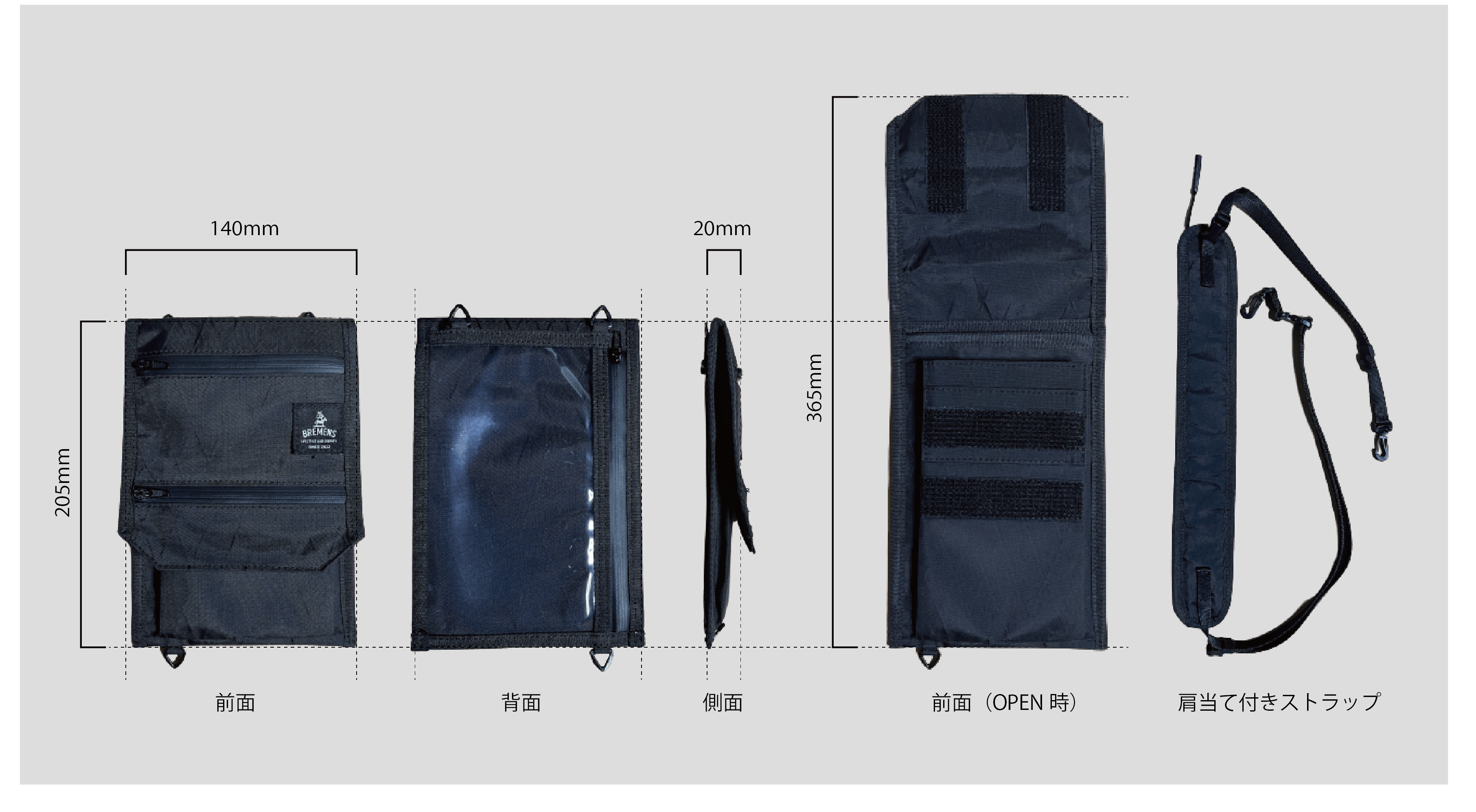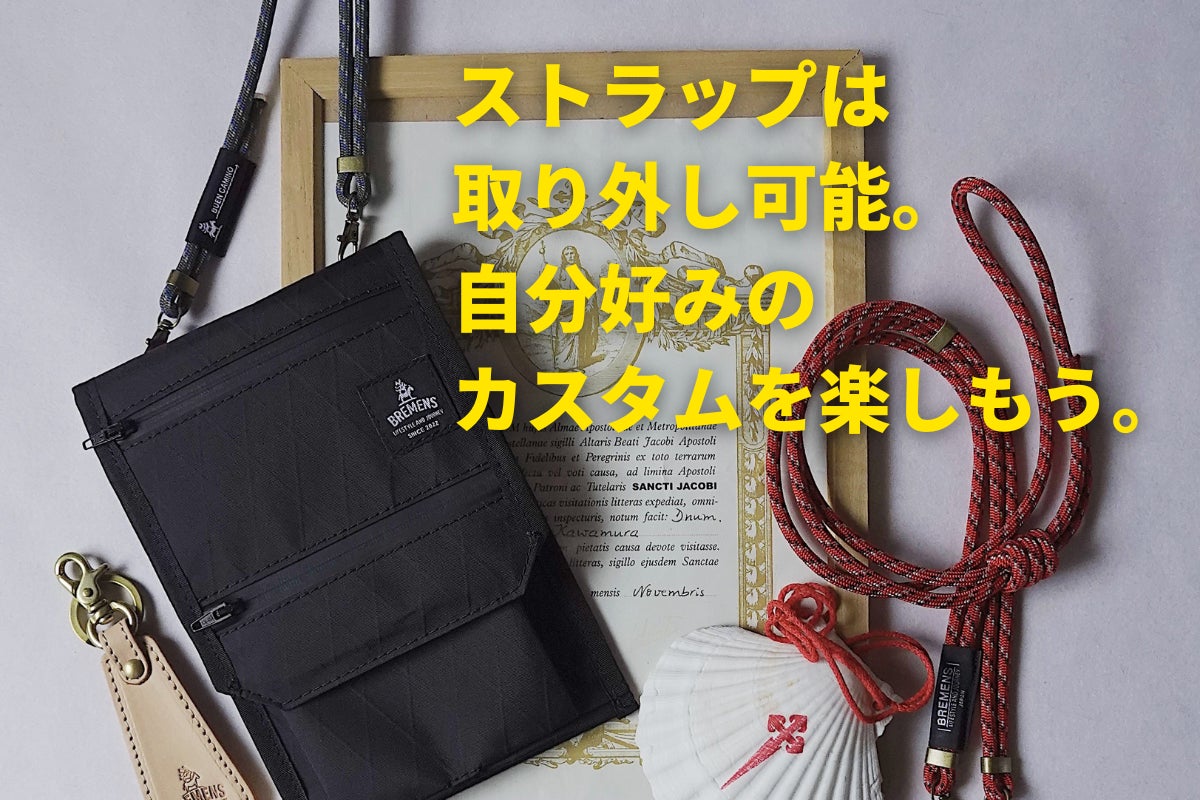海外の治安の悪い場所では横型にして胸の前に。また、取り外してバッグインバッグとしても使えますし、既にお持ちのストラップに付け替えてカスタマイズを楽しむことも可能です。カスタムストラップはBREMENSのHPにて販売していますので、気になった方はオンラインストアをご覧ください。
