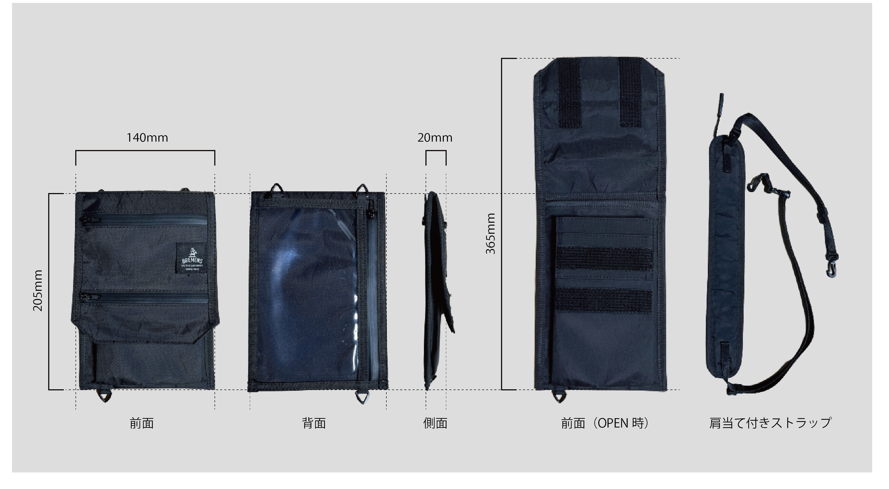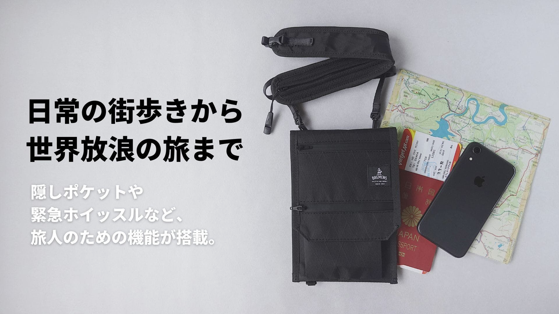 海外の治安の悪い場所では横型にして胸の前に。また、取り外してバッグインバッグとしても使えますし、既にお持ちのストラップに付け替えてカスタマイズを楽しむことも可能です。カスタムストラップはBREMENSのHPにて販売していますので、気になった方はオンラインストアをご覧ください。
