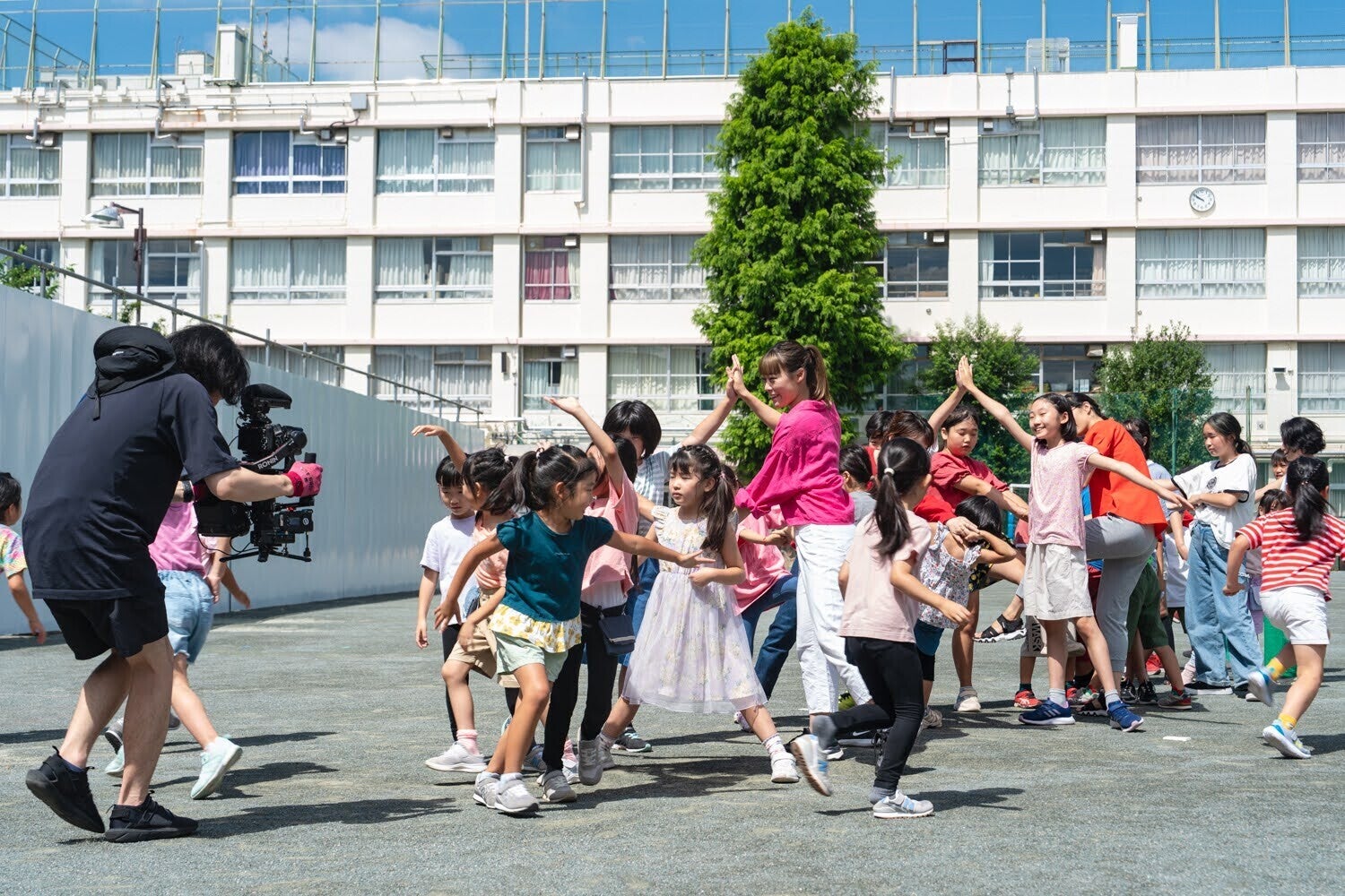 2023年7月末に小学生や地域住民を対象にしたダンスワークショップを実施。校庭の工事作業が始まる直前の8月2-3日に映像の撮影を実施しました。