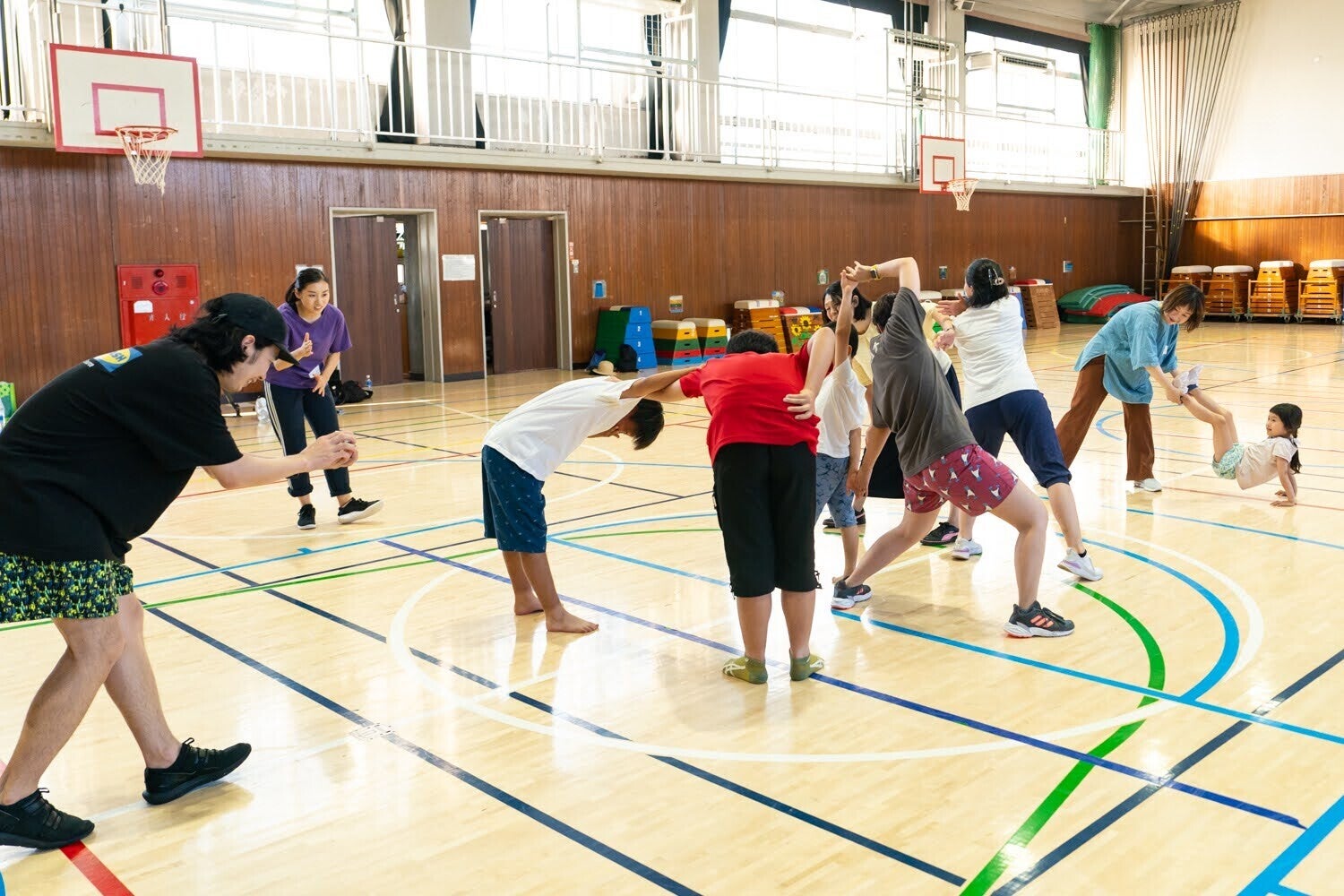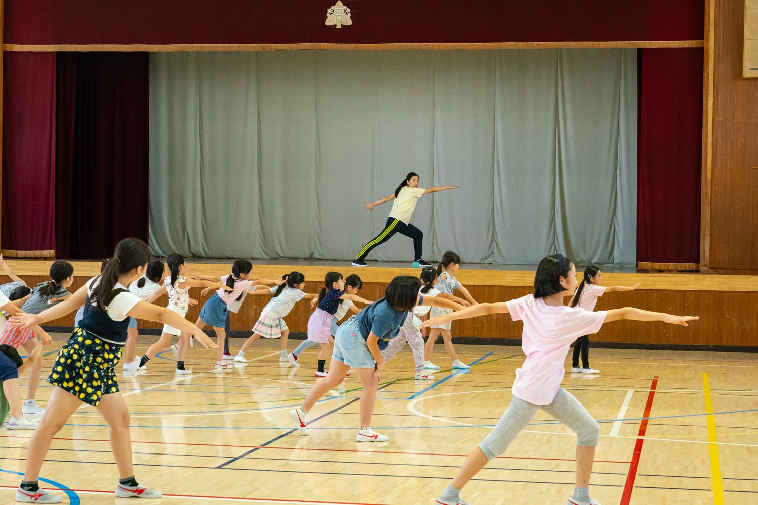 ☆向原小学校の子供たちにダンスワークショップをプレゼント:プレハブ校舎で工事の音と生活する子供たちにストレス発散の場としてのダンスワークショップをプレゼントいたします。