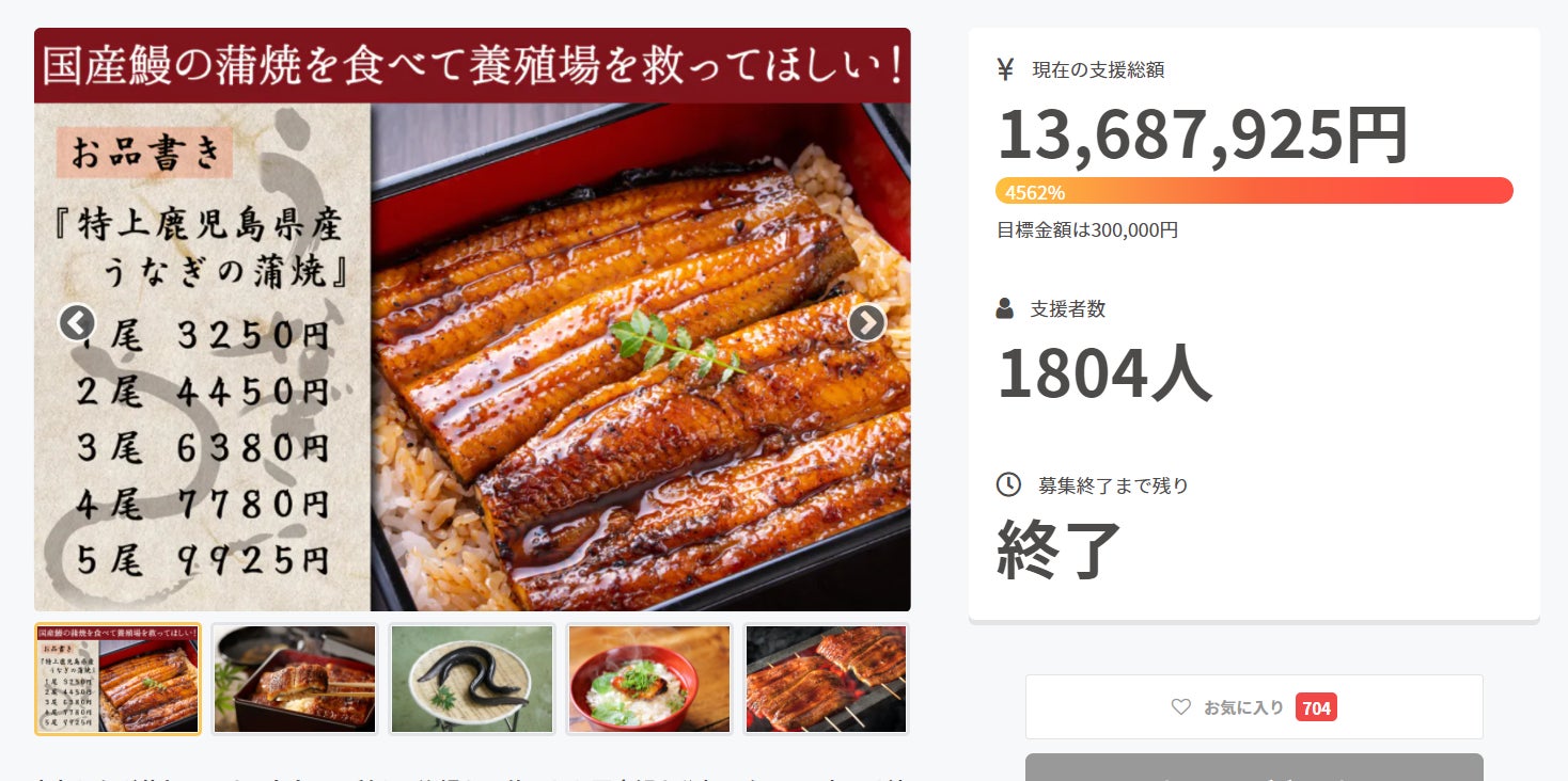 2024/06/15 18:29こちらの活動報告は支援者限定の公開です。最終回!売り切りラスト国産ウナギの蒲焼プロジェクト!公開しました!