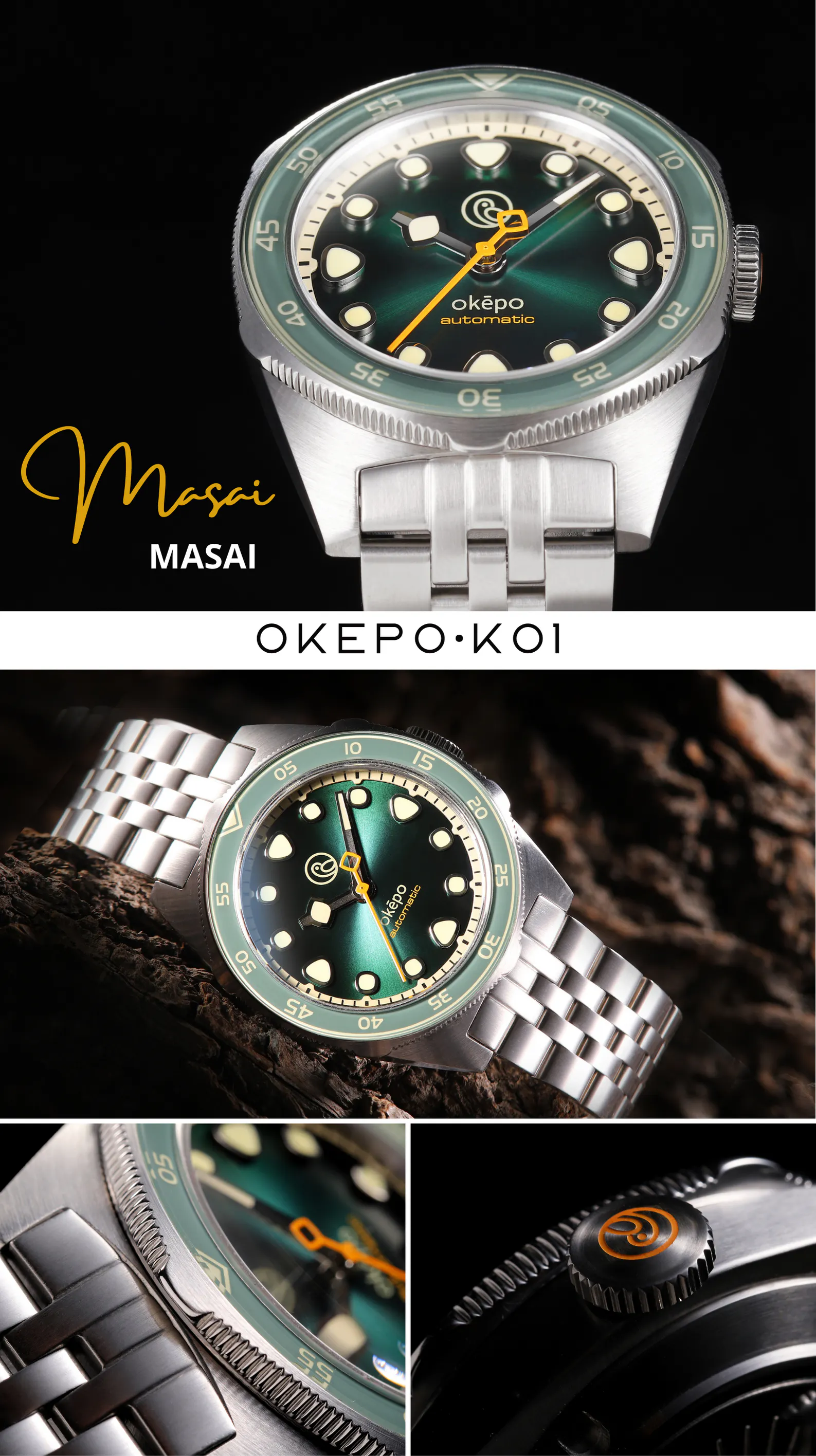 KO01“MASAI”:スチールケース/グリーン光沢ダイヤル/ミントグリーン・ベゼル