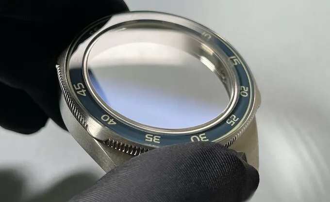 サファイアクリスタルは傷がつきにくく、底面は3層の反射防止コーティングが施されています。
