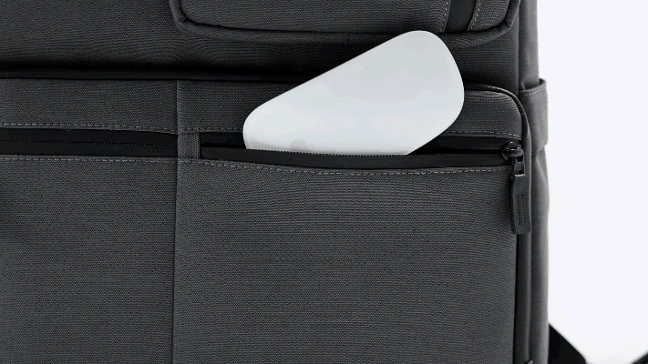マウス、モバイルバッテリー、名刺入れなどの小物は、右のポケットに収納できます。