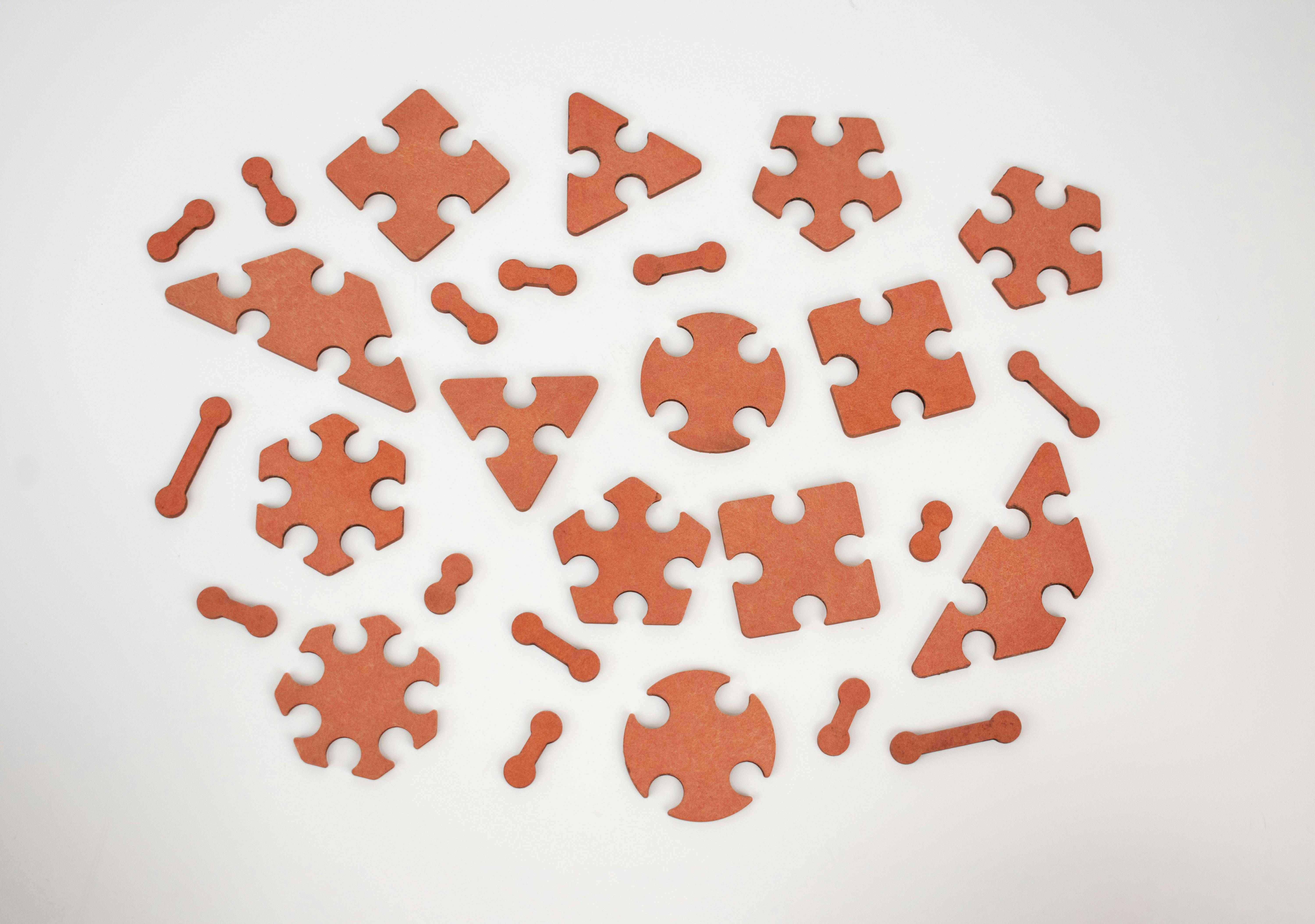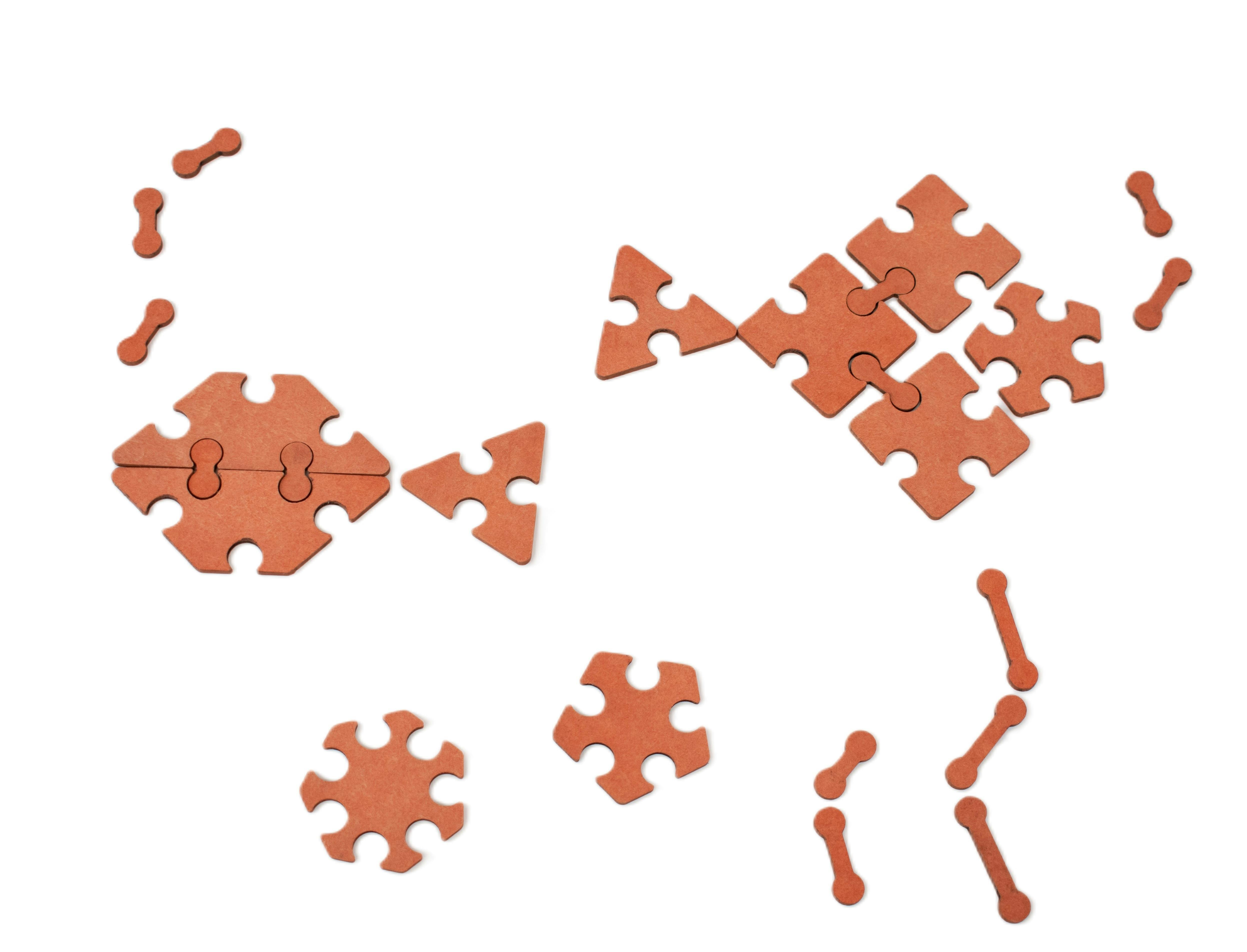 つなぎ方は自由。頭の中でつくりたいものを思い浮かべ、それを幾何学的に分解し、それらのピースを繋いで構成することで完成させることができます。