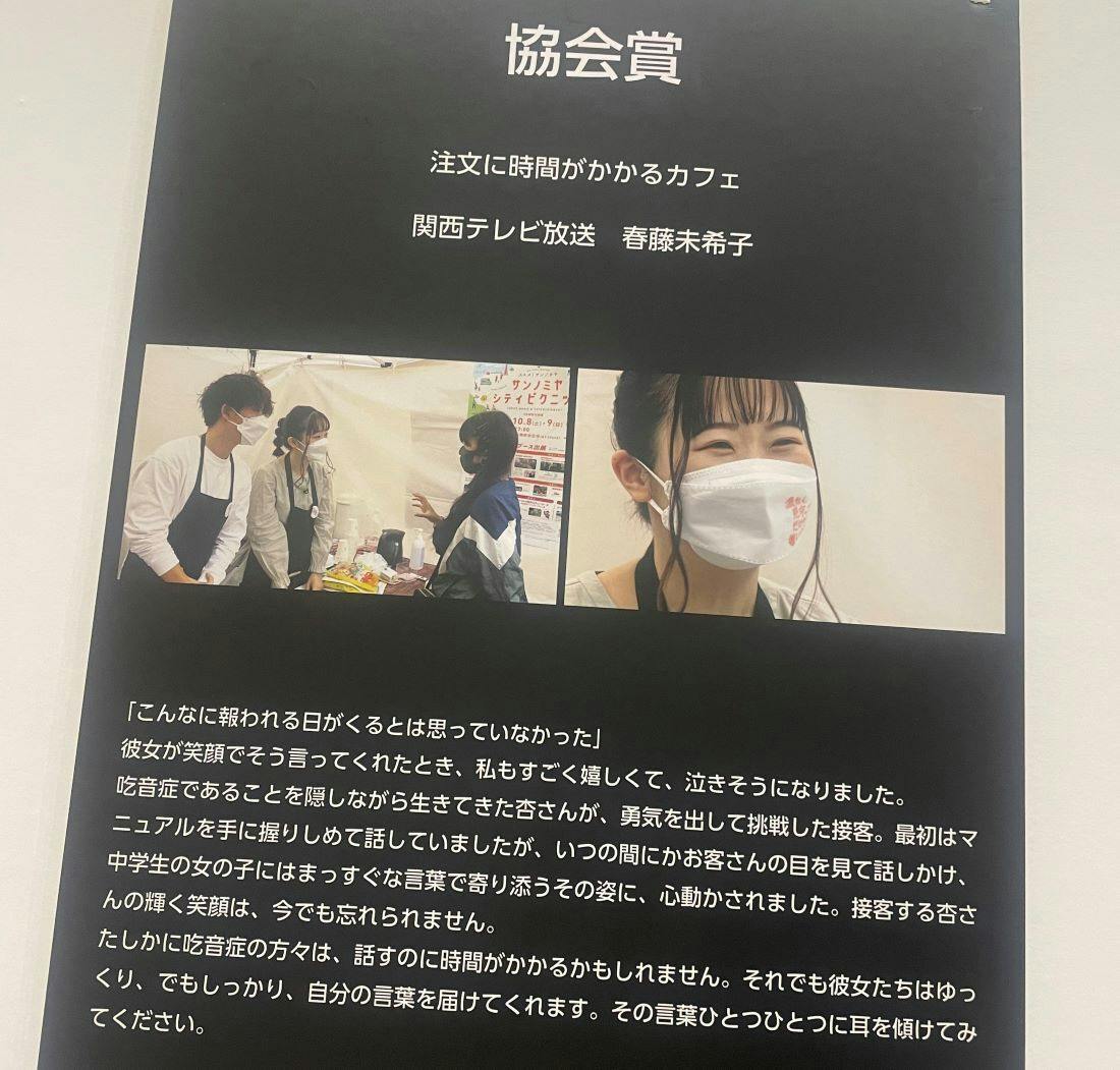 また、関西テレビの密着取材の動画は、YouTubeで400万回再生を達成し、最優秀の協会賞もいただくことができ、多くの方々に吃音症のことを知っていただくことができました。