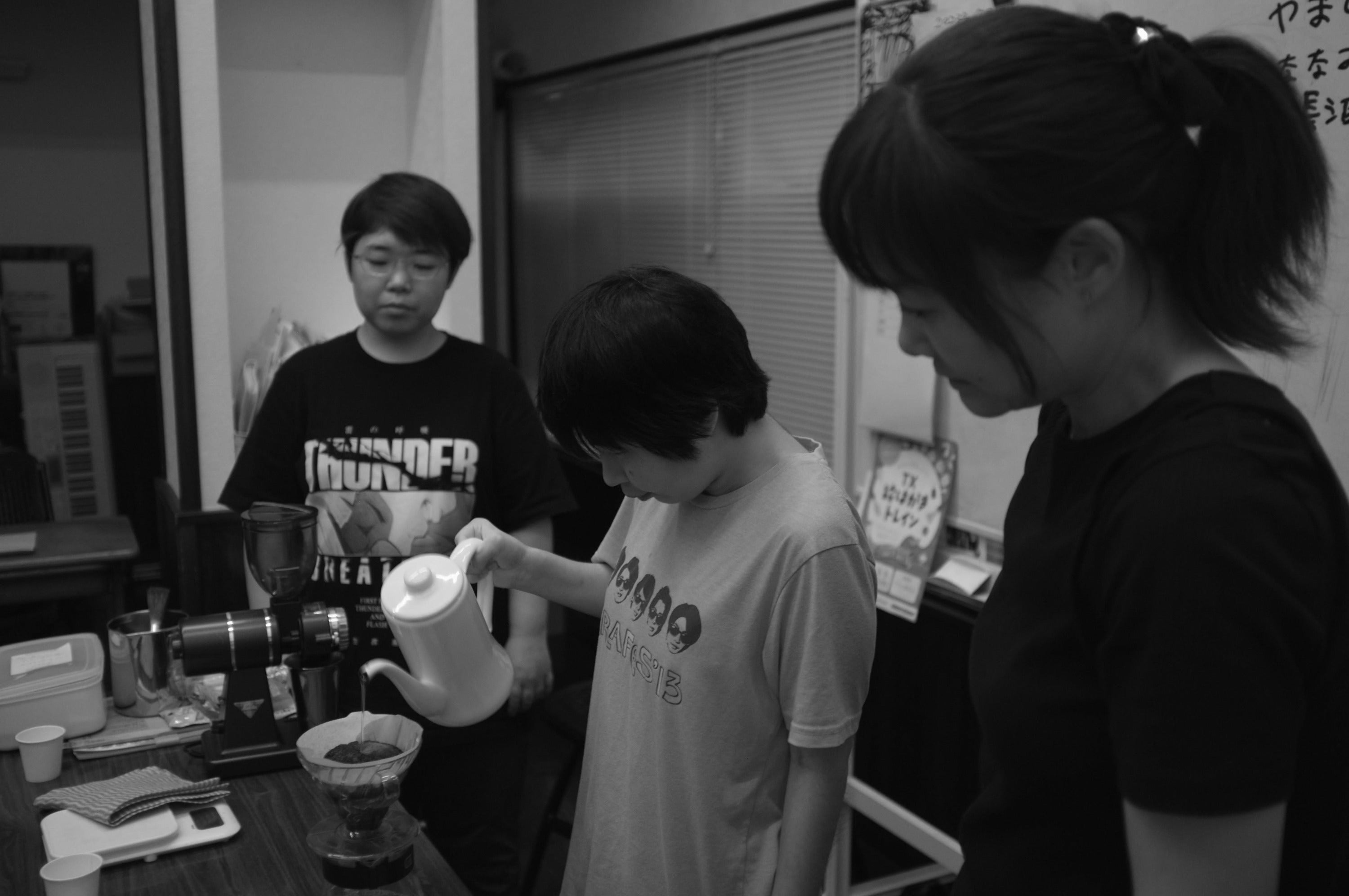 を事業所のお仕事にしたくてまったく知識のなかった利用者さんたちにドリップの技術を