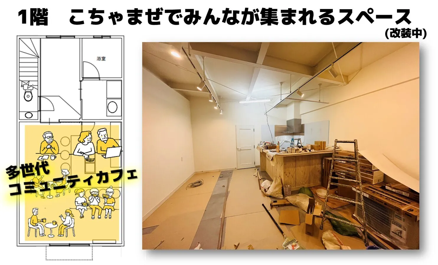 クラウドファンディング終了 カフェ・レンタルスペースなどの改修開始