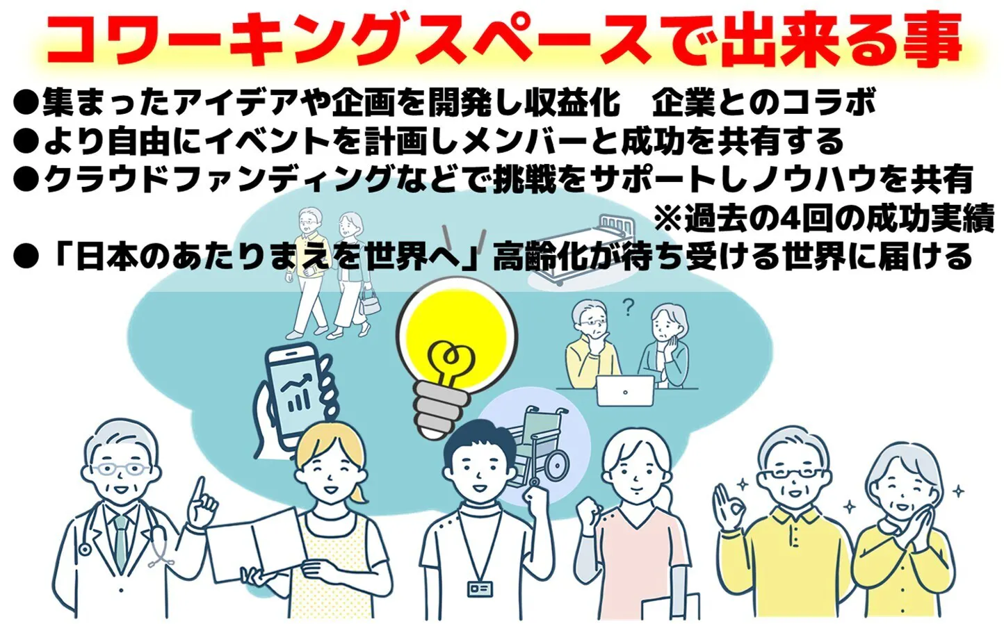 本プロジェクトで実現したい大きな目的の1つは「医療・福祉職が活躍できる場所」をつくることです。