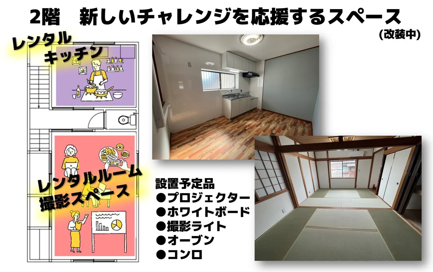 2階 レンタルキッチン セミナールーム 貸しスペース 撮影スタジオ
