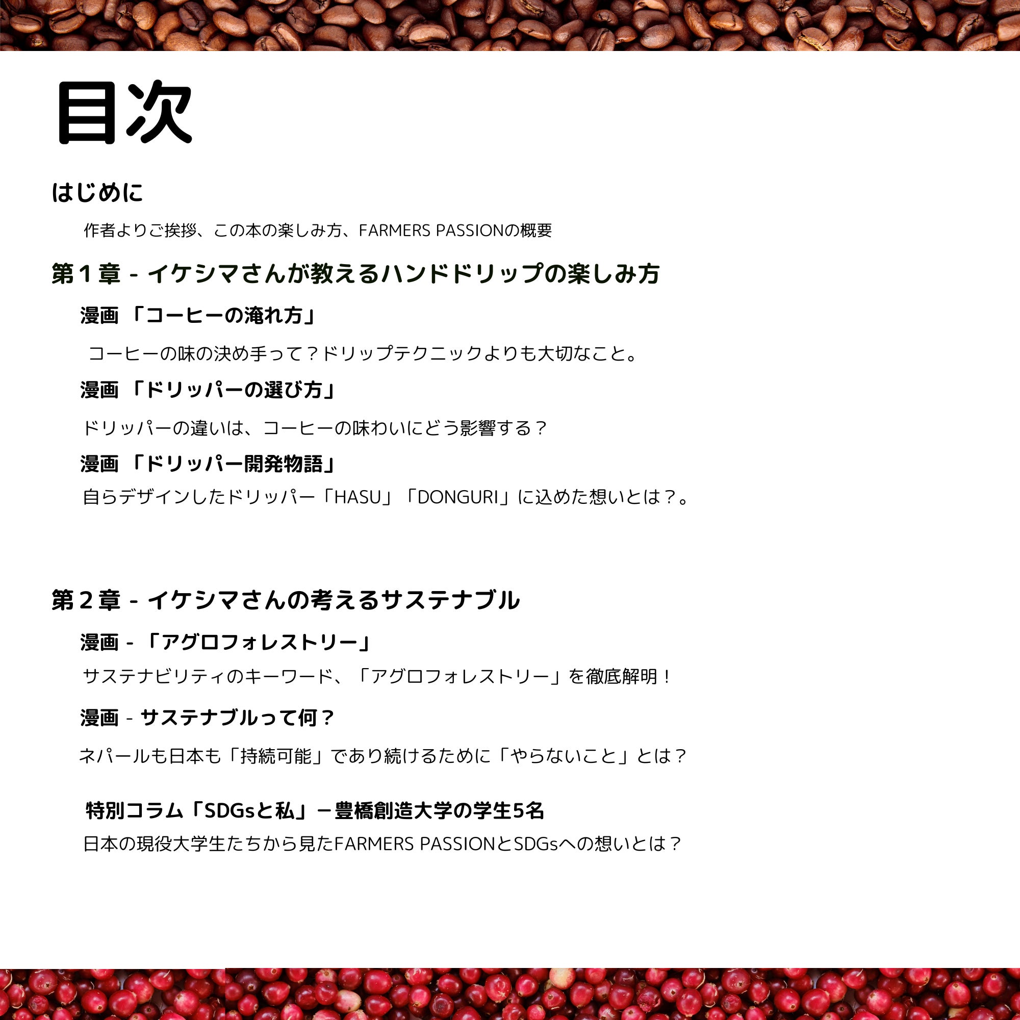 皆さん、こんにちは。株式会社SHANTI SHANTI COFFEE FARM、「FARMERS PASSION」代表の池島英総です。FARMERS PASSIONは、ネパール、シャンジャ郡マヤタリ村に自社農園をもち、自然を活かした「アグロフォレストリー」(森林農法)で珈琲や農作物を栽培し、それらを加工、精製、日本への輸送、焙煎、袋詰めまで全て自社で手掛ける会社です。