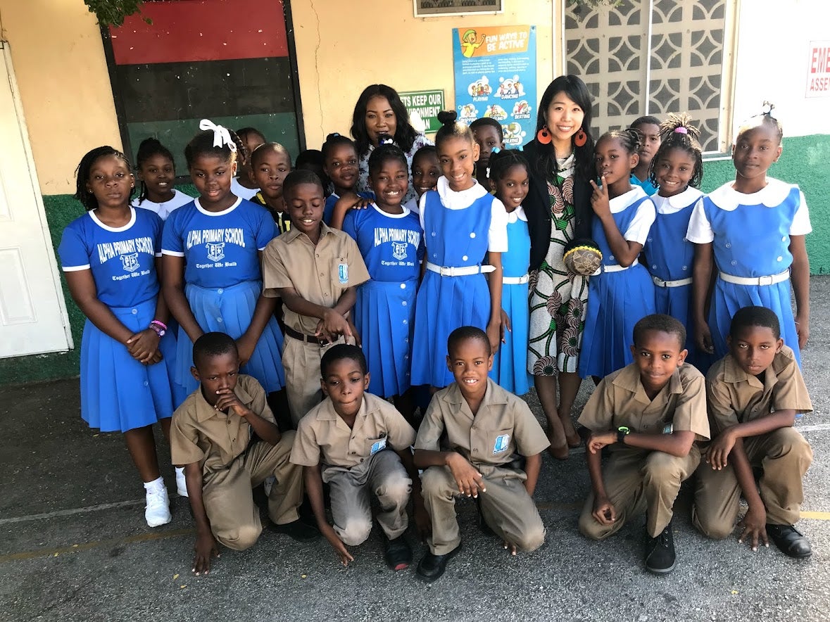 学習発表会の日、赴任先の校長、カウンターパート、同僚と。