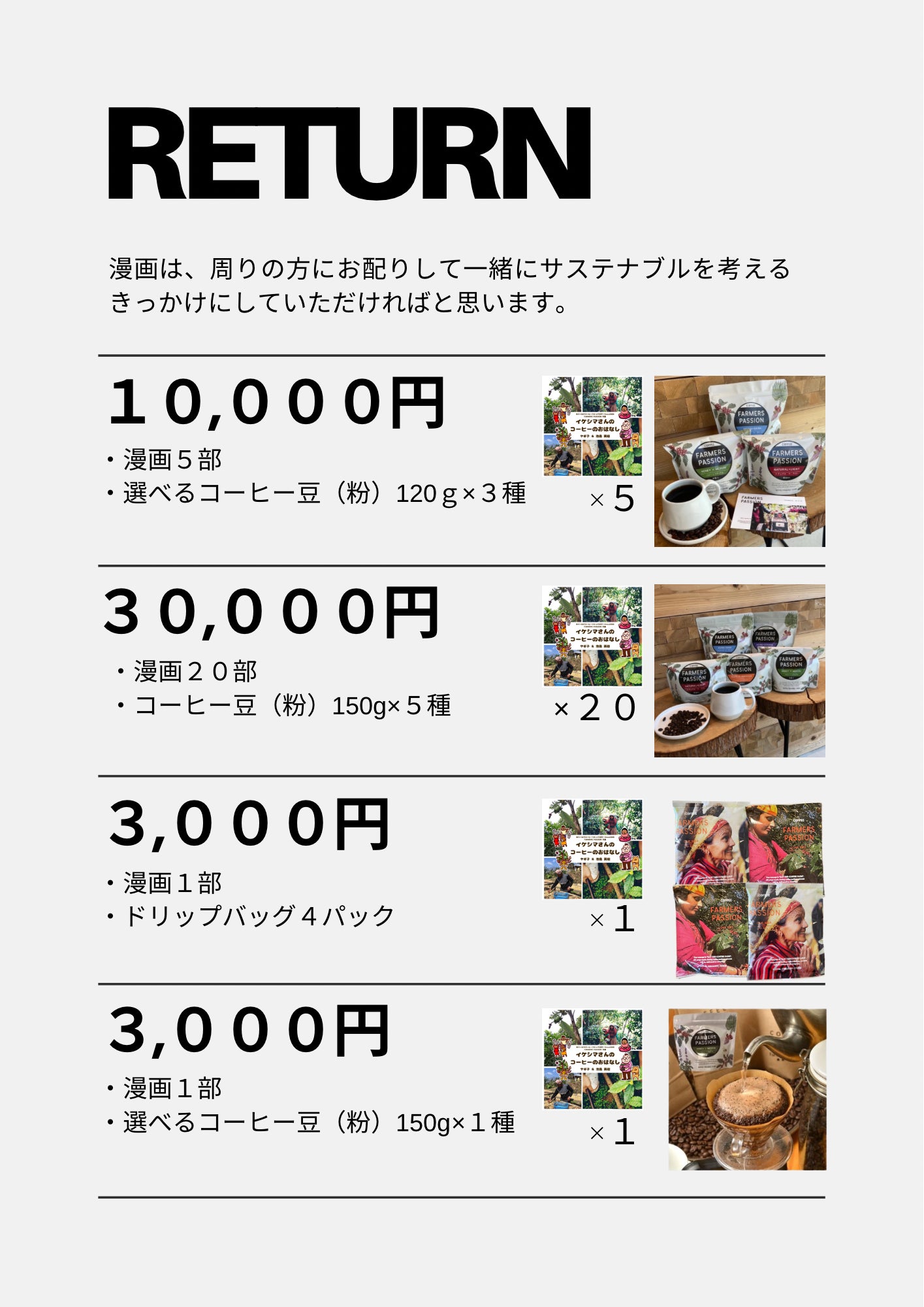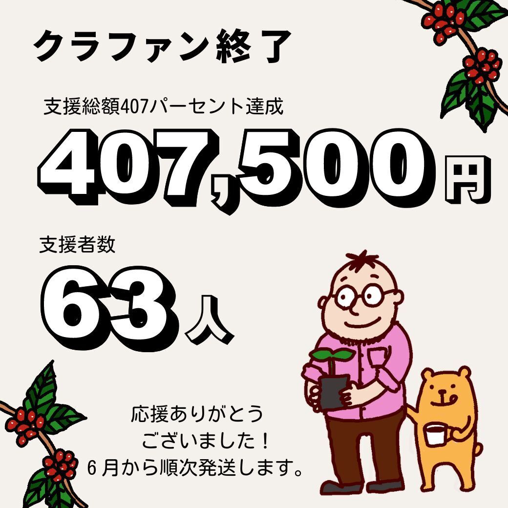 2024/02/27 21:41こんばんは!スタッフ伊藤です。本日午後、ネクストゴールに設定していたご支援合計50人を達成致しました!したがって、すでにご支援いただいた皆様含め全てのリターンに漫画を1部追加致します。是非、お近くの方にプレゼントしていただき、感想等交流していただけたら、とっても嬉しいです。クラファン終了まであと、残り2日。ラストスパートということで、今朝は、焙煎の生配信を行いました。https://www.instagram.com/reel/C31Z_pfP7yJ/?utm_source=ig_web_copy_link&igsh=MzRlODBiNWFlZA==アーカイブを期間限定で残します。上記リンクからご覧ください。改めまして、ご支援いただいた皆様、ありがとうございました。 もっと見る