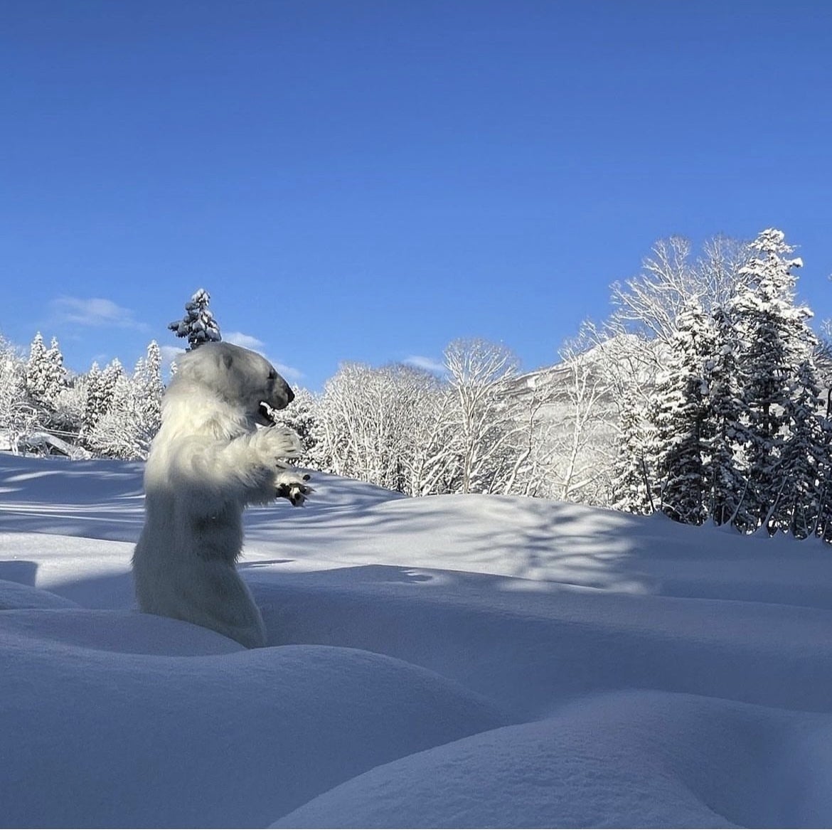 しぇろくまサウナのマスコットは外気浴を歩いているところ。